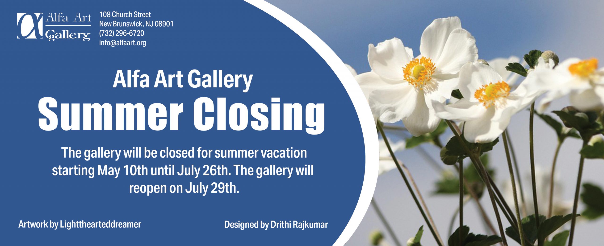 Happy Spring from Alfa Art Gallery! As we approach the summer months, we would like to note that the Gallery will be closed for summer vacation from May 10, 2025, until July 26, 2025. We look forward to reopening on July 29, 2025!