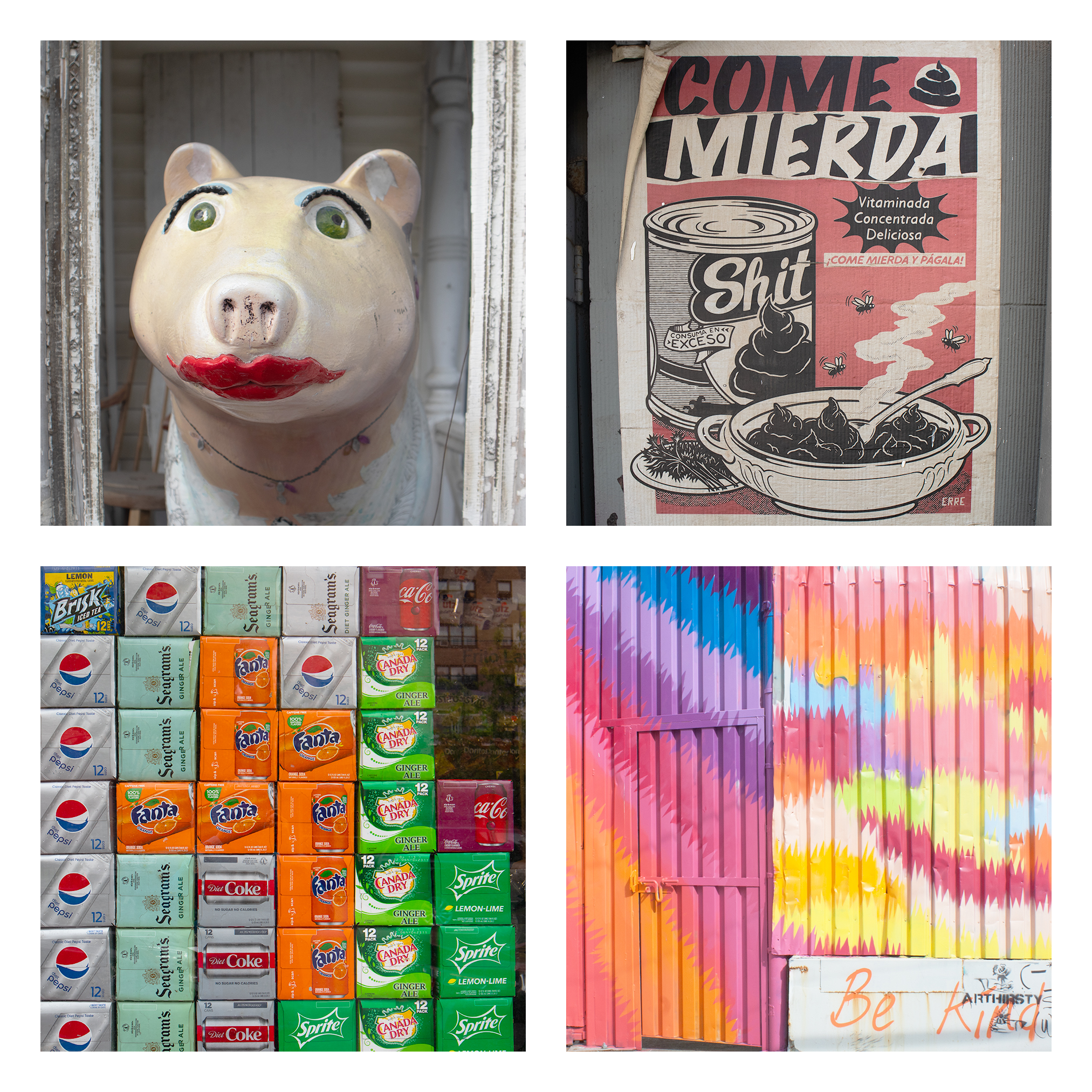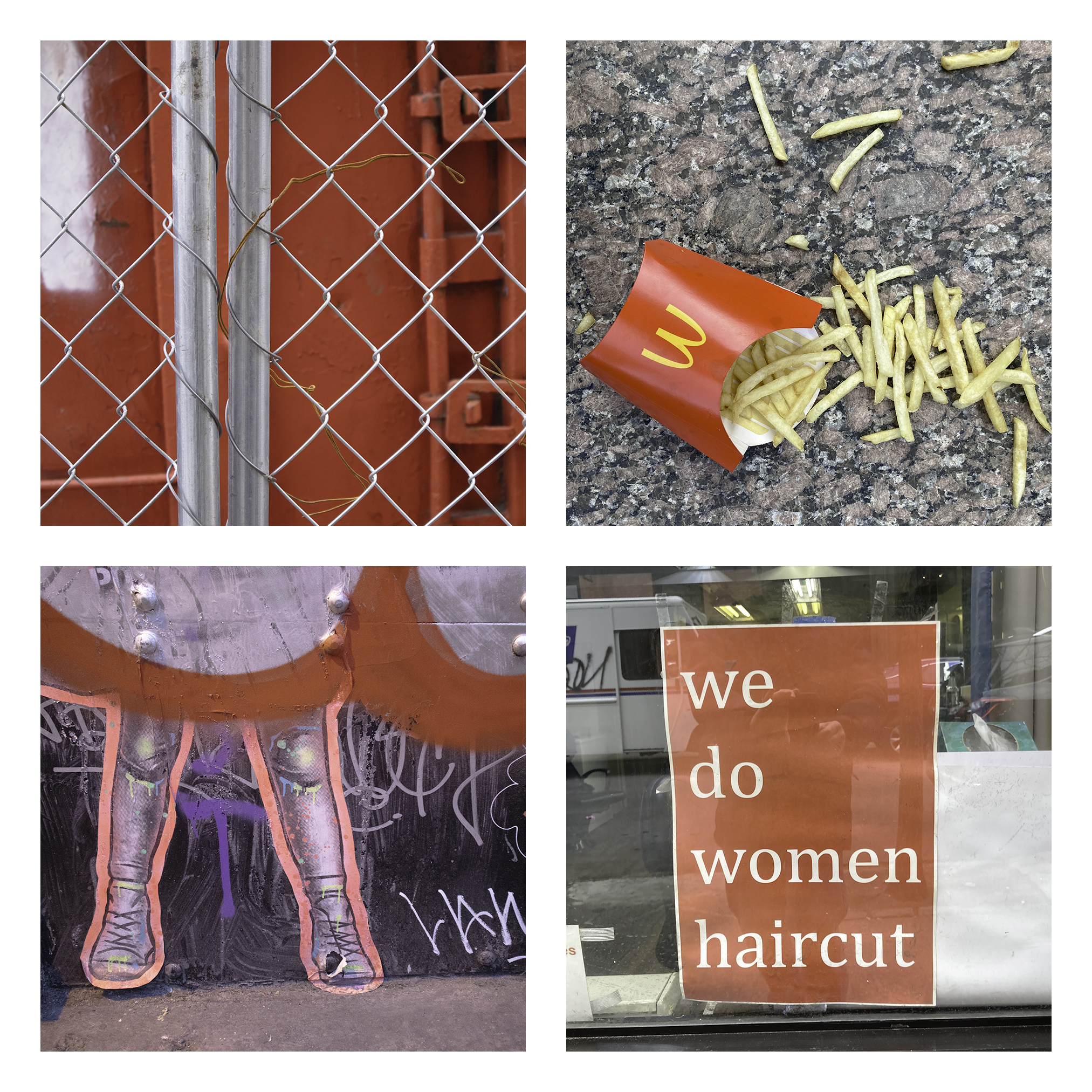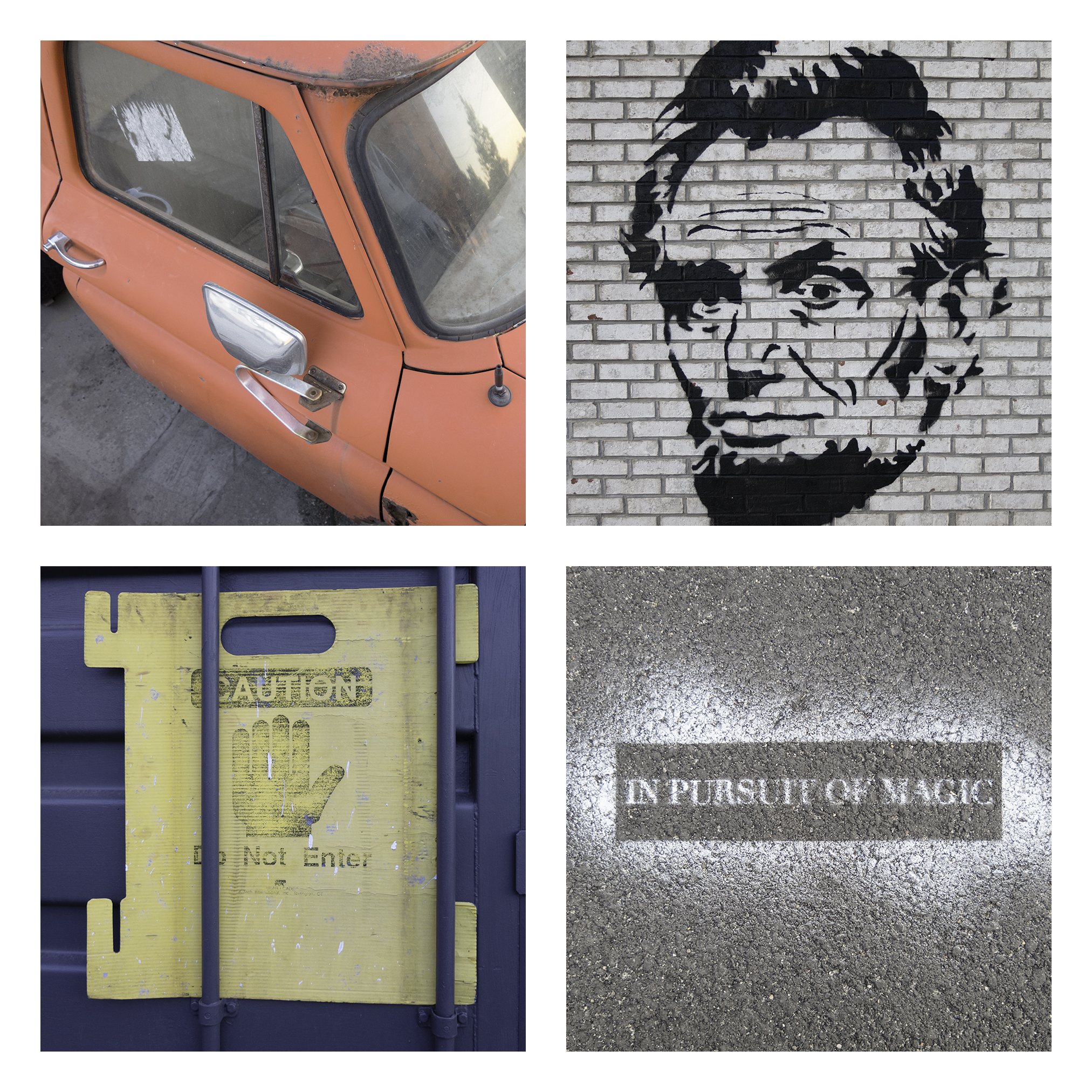 I explore my environment with an eye for geometric patterns and appealing colors. The original source material is then altered and then seemingly placed at random as a polyptych. My attempt is to create a visual dance between these multiple images, the result possibly greater than each individual component.