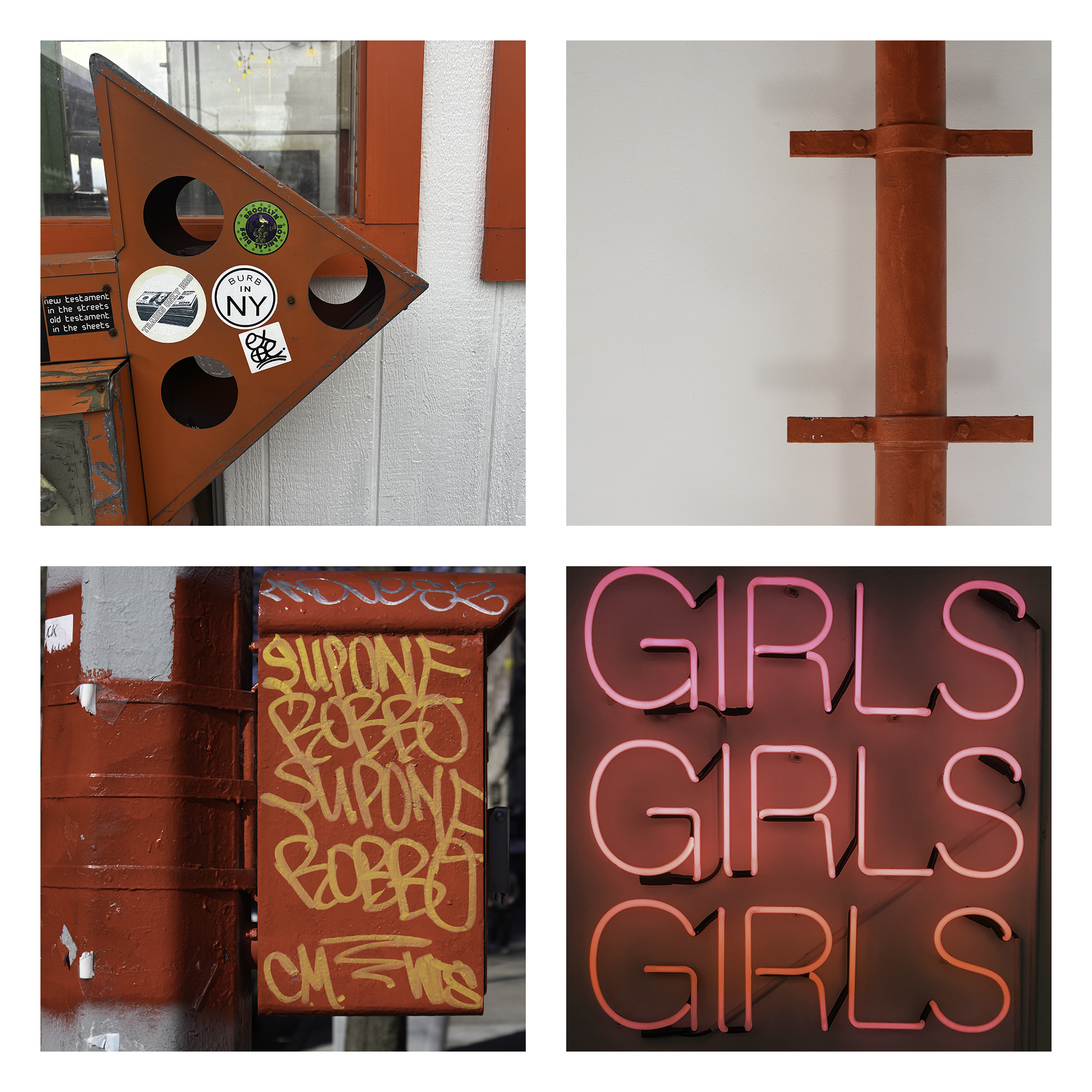“Stories” is an ongoing project where I combine four images, typically found objects and artifacts, connected by a specific theme, shape, or color. “Covid Stories,” is my observation of the pandemic in New York.