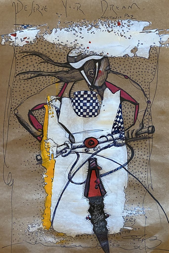 “Thework, metaphorically travels through two different forms ofrepresentation:abstract and realism,there by creating a narrative that embraces a socio-political point of view. My narrative follows my childhood fantasies, which focuses on lifestyles that are usually viewed as male dominated.”