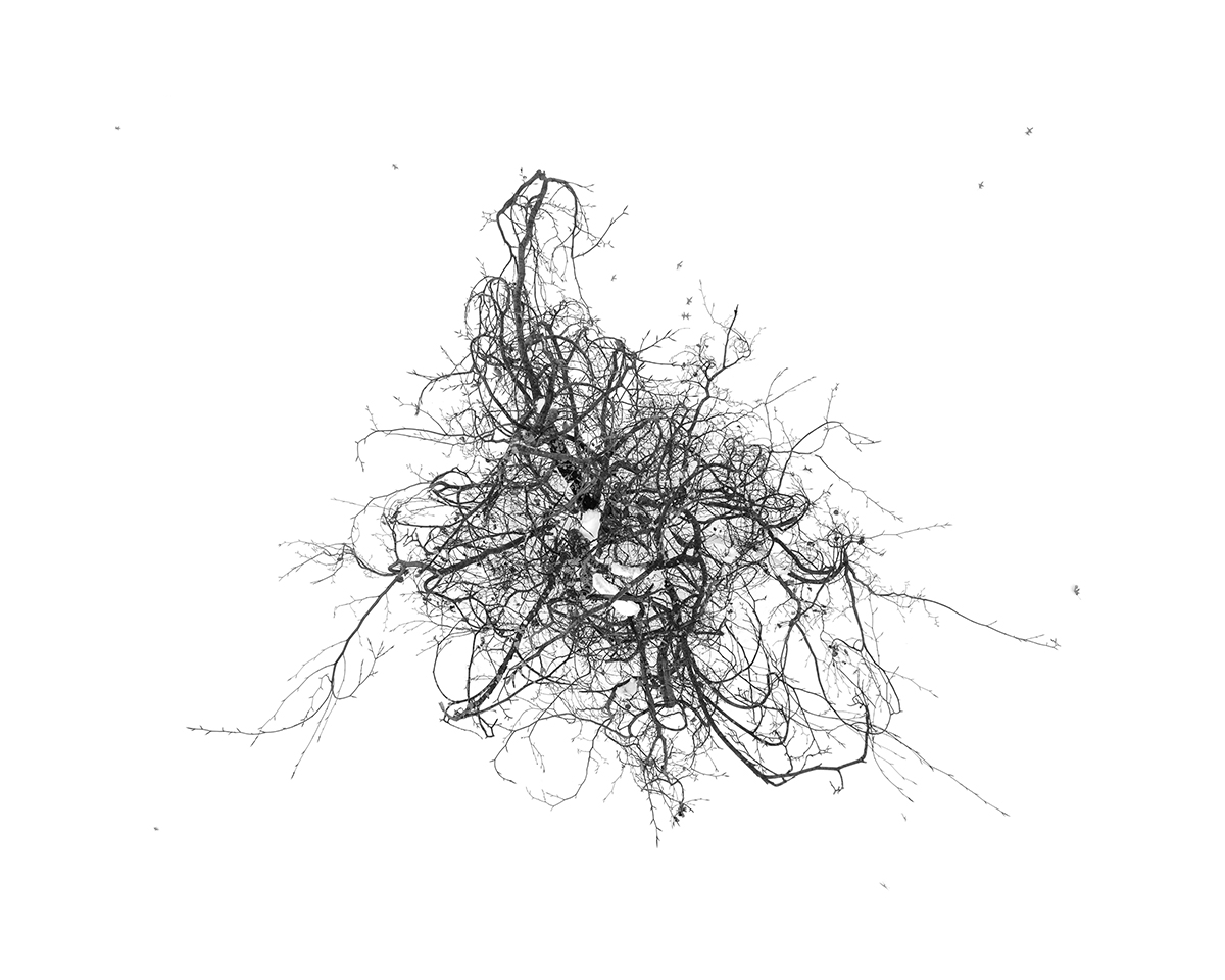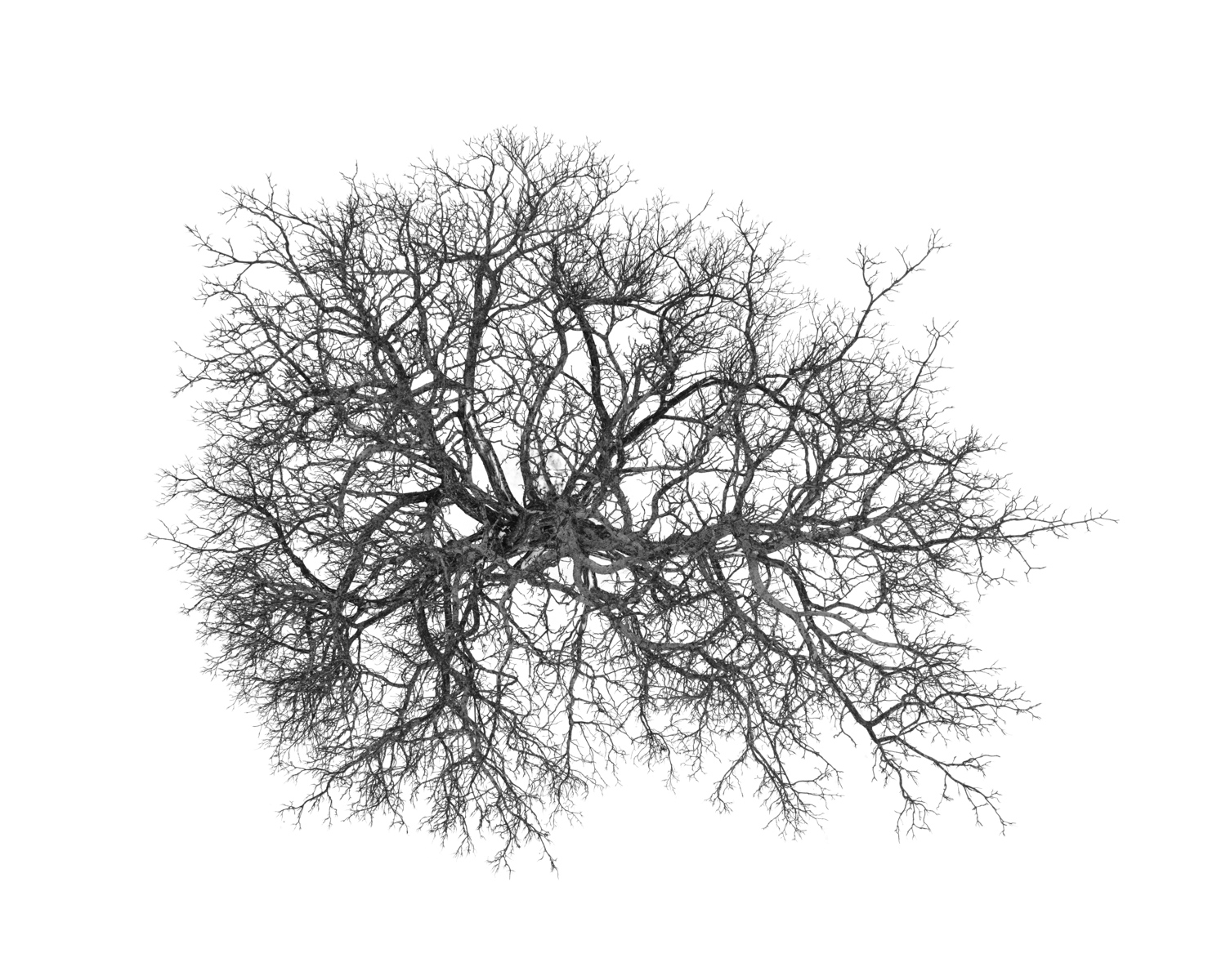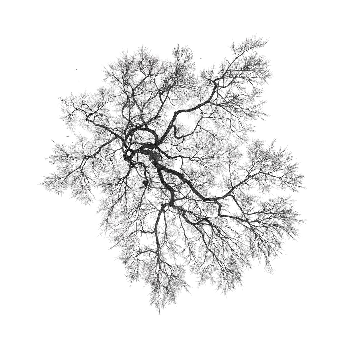 Dwight Hiscano has documented various natural and urban landscapes through photography for many years, traveling across various parts of the world and partaking in conservation practices. An atypical approach is used in his award-winning photograph series, “Trees from Above,” where Hiscano uses a drone lens to capture black and white photos of the trees from a bird’s eye view. The striking composition of the works in this series put the dark, vein-like branches of the tree right against the snow-white background, evoking imagery of biological systems such as organs and cells and comparing those systems to the role of trees for the planet.