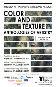 Alfa Art Gallery utilizes New Brunswick Art Salons (NBAS) to unify the local art community and beyond. Since starting the program in 2010 Alfa Art Gallery has made a point to include a salon dedicated to showcasing oil, watercolor, photography and mixed media artworks. Over the years, the NBAS has not only exhibited works from both established and emerging artists but has also made fruitful connections locally and internationally through its successful programs. Within this non-profit organization, Alfa Art Gallery maintains its mission to uplift artists by providing an open and innovative environment.