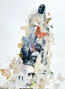 Birthing Humanity Mixed media, Handmade paper collage on archival paper 37” x 30”