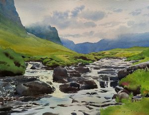 The Russel Burn, Applecross Hills, Watercolor, 22” x 28”