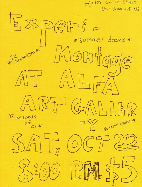 A night of ambient, nowave, and experimental music and performances featuring international and local acts, including