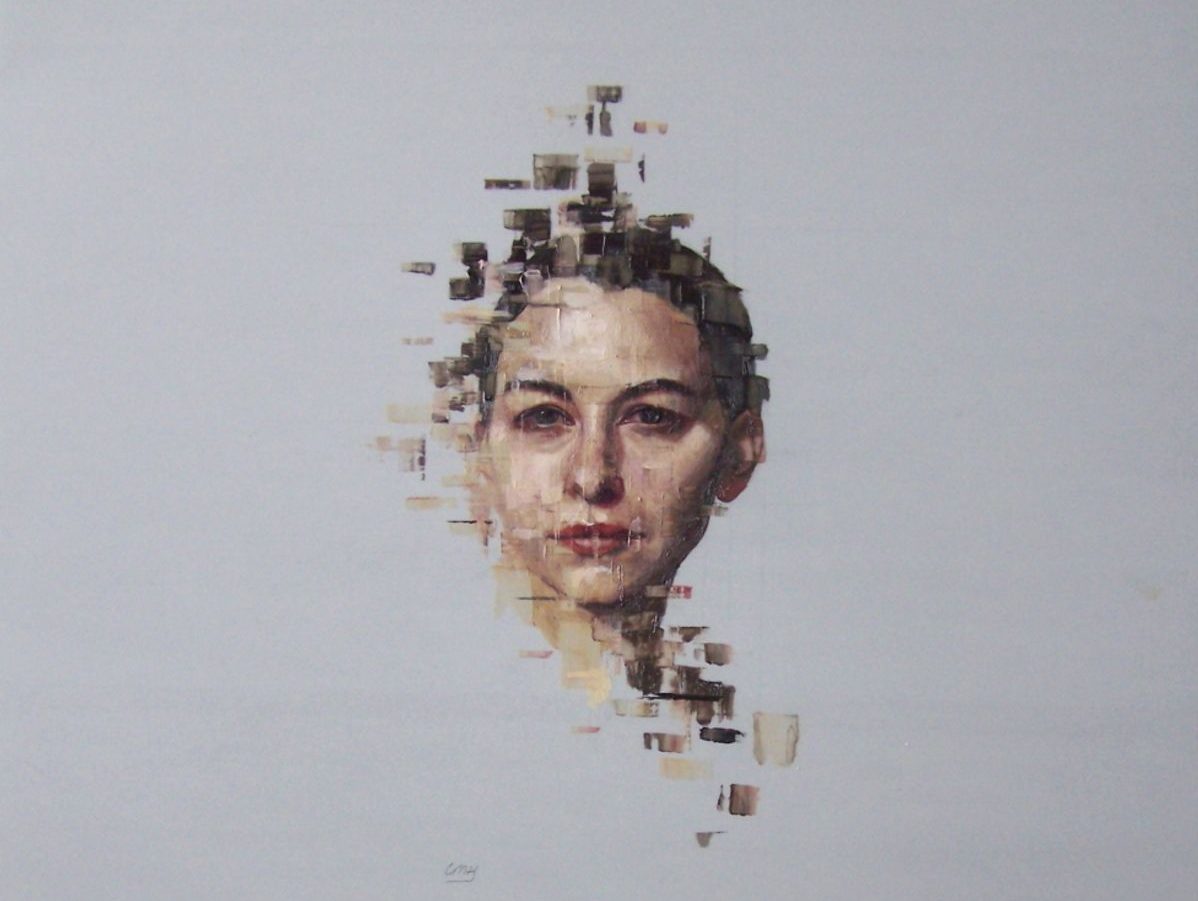 Charity Henderson explores psychological states emoting on the human face through blurred edges and textured strokes. Her portraiture series presented here uses oils and graphite on Dura-Lar, depicting precise details that become fragmented as the view expands beyond the face. Her use of a translucent medium for a background evokes obscured sensibility, one of Henderson’s signature techniques, as the sharpness of the subjects’ features demand notice. The eyes lock with the viewers’, establishing a deep sense of intimacy as spectator and spectacle share an unspoken story, lacking full explanation yet consuming full attention. Henderson received her BFA in Painting from SUNY Brockport and her MFA from University of Massachusetts Dartmouth on a Distinguished Artist Fellowship.