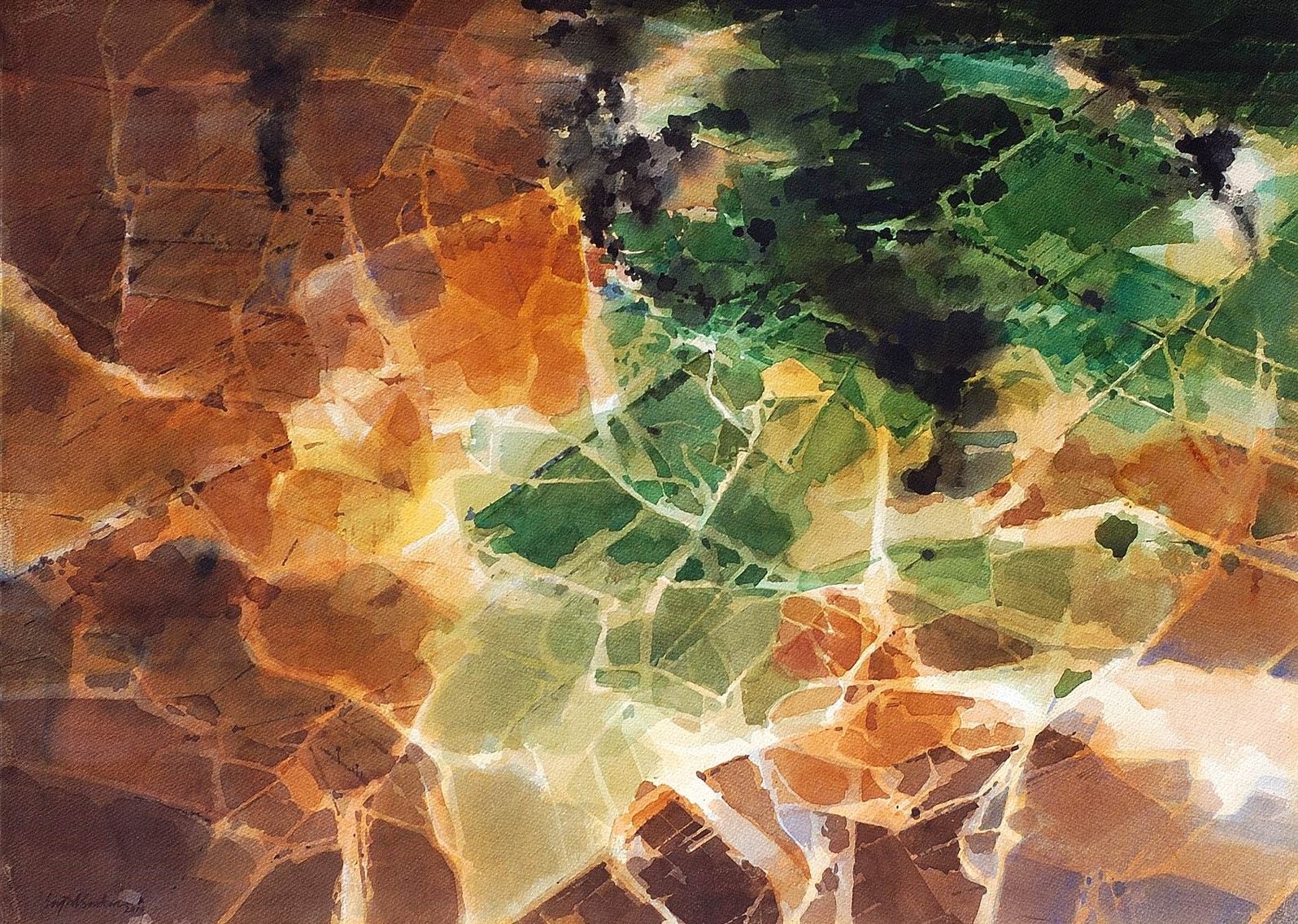 Karen Terry is a painter inspired by her love of nature. Her greatest inspiration comes from the change of seasons, and her daily interactions with nature. She paints what she takes in of the natural world, using a painting technique that emulates visual and sensory memory. The result is low light images without hard lines. They are an exploration of space and form, ambience and energy, using the traditional east Asian medium of Sumi ink and acrylic painting.
