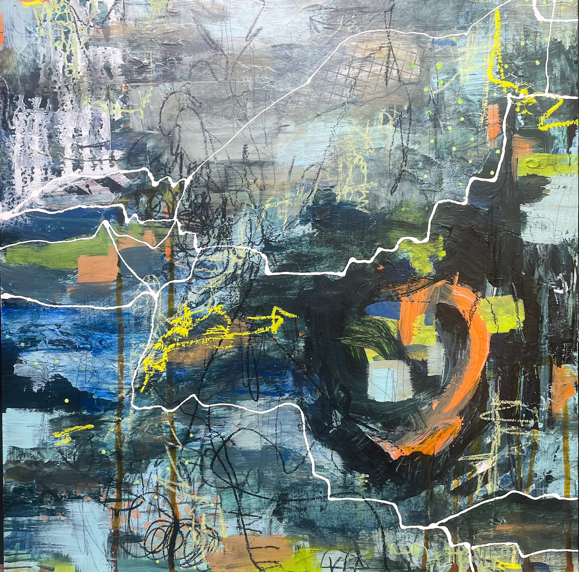 Kat Collins is an acclaimed abstract artist based in Easton, Pennsylvania, known for her vibrant and emotionally charged mixed media paintings. Graduating with a BFA from Mount Vernon Nazarene University in 2000, she has since cultivated a distinctive style characterized by spontaneous mark-making, layered textures, and a rich palette of colors.
