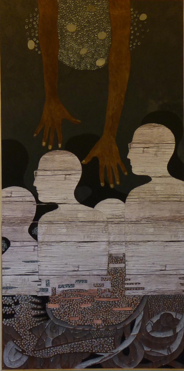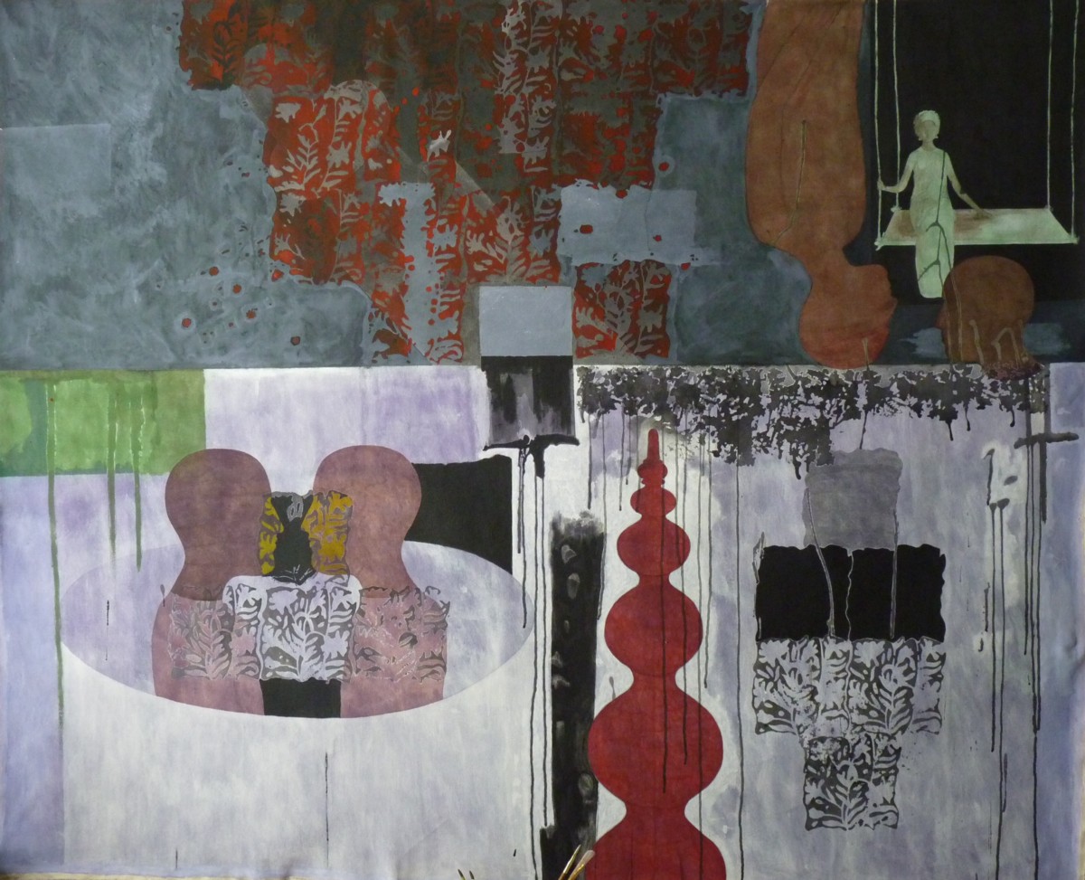 Anujan Ezhikode, born and raised in the state of Kerala in South India, joined the theater program at the Kerala Kalamandalam, The Kerala State Academy of Arts. In addition to his interest in visual arts, he has been influenced by temple arts, folk and religious rituals, music, and dance.  Upon coming to New York, he continued his study of the arts, focusing on painting, printmaking and sculpture at the Art Students League.  Here, he received the “John Hovannes Memorial Merit Scholarship.”  He has won various awards and received honors and acknowledgements, including being one of six artists featured in an audio, video and live presentation for the National Day of Listening at the NYPL on Fifth Avenue in 2009, which is now archived at the Library of Congress.  His work expresses cultural identity, displacement and memory, thus reconnecting with the past.  All of these influences, especially his theatrical training, taught him the importance of having movements, light and color in his work.  His use of unique materials also enhances the personalized effect that exudes from his work.  His contrasting use of flow and fragmentation, as well as revealing and obscuring, incorporates the element of time and space. This, in turn, enhances his connection with memory, identity and rekindling with the past.