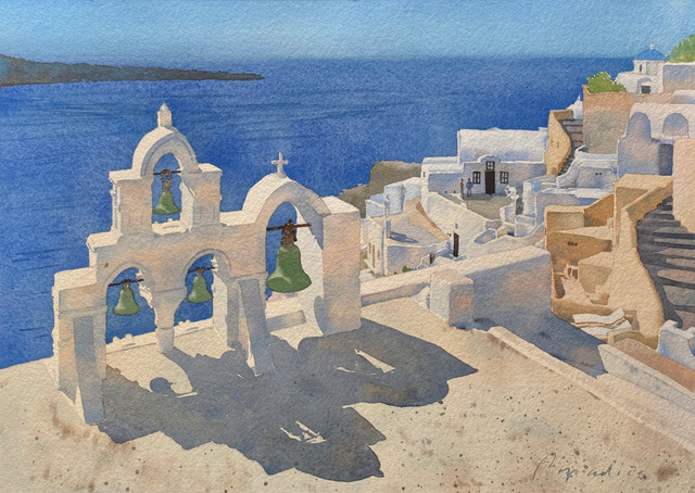 “My formal art training was in oil painting and while I appreciate all that I learned about oils, I love the look and essence of watercolor. When I work with watercolor, I am reminded how unpredictable life is and to always expect the unexpected. I like the feel of a handmade sheet of paper; the cotton fiber surface is slightly irregular and it is surprisingly heavy. Before I start a picture, I know a small spot somewhere on it will be left untouched, unpainted and reserved for my highest value. When I look at a blank sheet, I often ponder where that preserved white will occur.