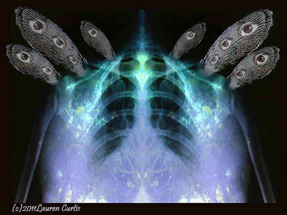 Lauren Curtis was graduated with a BFA from Mason Gross School of the Arts, Rutgers University (New Brunswick, NJ), in 1988. She has remained in the New Brunswick/Franklin Park, NJ area ever since and has been creating as a full-time artist. She enjoys working in a variety of media, including oils, collage, pen & ink, watercolor and photography. The artist is happiest when creating pieces that represent her love of nature, wildlife, travel and spiritual subject matter. The symbolism and mythology of ancient cultures are fused with the symbols from modern-day, natural spiritual practices, to form a unique and eclectic style. These images are often portrayed through the woman’s perspective, showing the importance of “The Feminine” , which is sometimes over-looked. Travel is another major influence in Lauren’s work and the pieces, usually photographs, created from these journeys helps the artist to convey the beauty found in diversity, as well as in the similarities, that run through various cultural belief-systems. As someone who believes in Earth-centered spirituality and the importance of mythology, Lauren has & continues to study the myths of various ancient and modern cultures and religions, which ties together her love of travel, nature and symbolism. This is evident in her photography and digital mixed media work, which includes her current series, “X-RAYted”, which began in 2010 & continues today. In this body of work, Lauren incorporates photos she has taken of human and animal x-rays, which are combined with other original photos, ss well as various collaged elements.