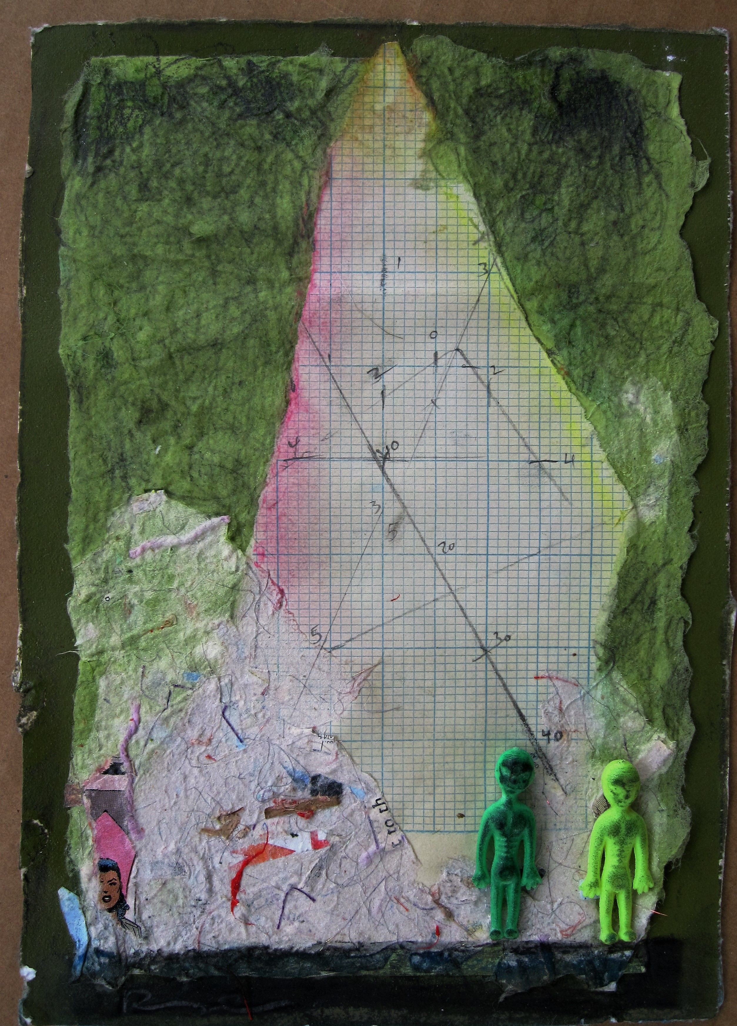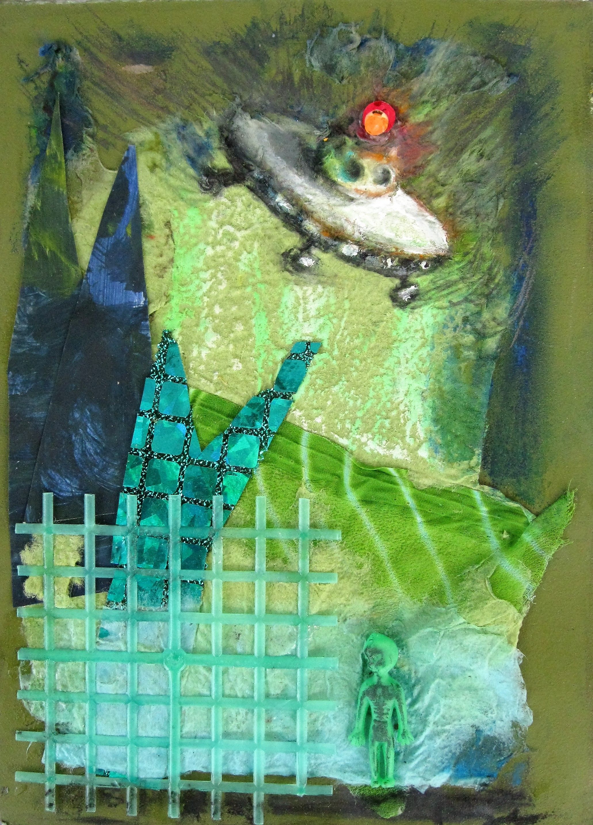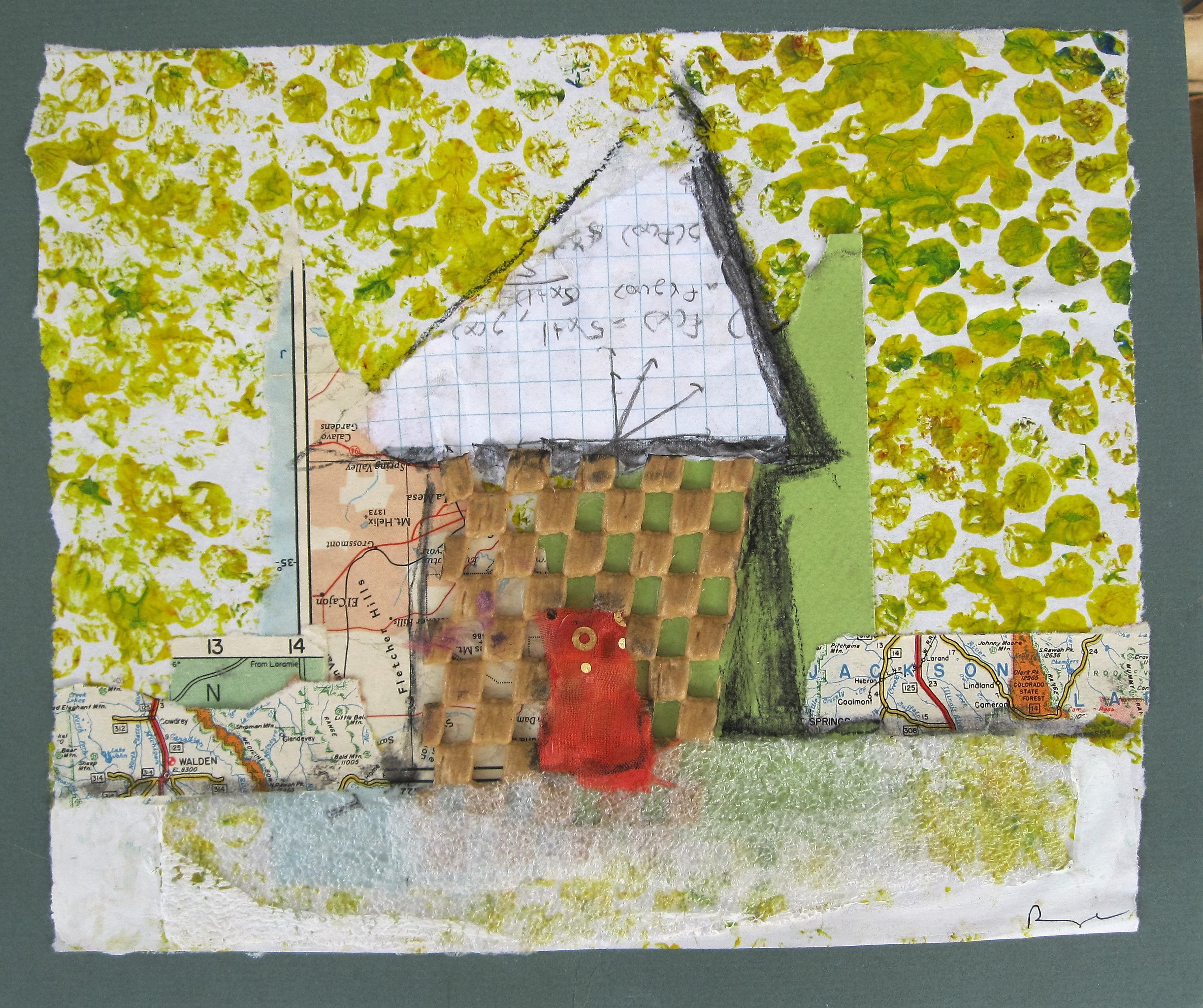 My work is an elegy to all the ephemera in my life. I layer printed papers such as almanac pages, dictionary excerpts and cast-off artwork with my own drawing and painting. The materials and I are storytellers in a visual world. I include text to imply sound within the visual silence and express time by the type of font. In the last few years, my work has taken on a biographical nature by using image transfers of old family photographs or the photographs themselves. Repeating images, shapes, and colors in layers, I create a composition that floats through time and space.