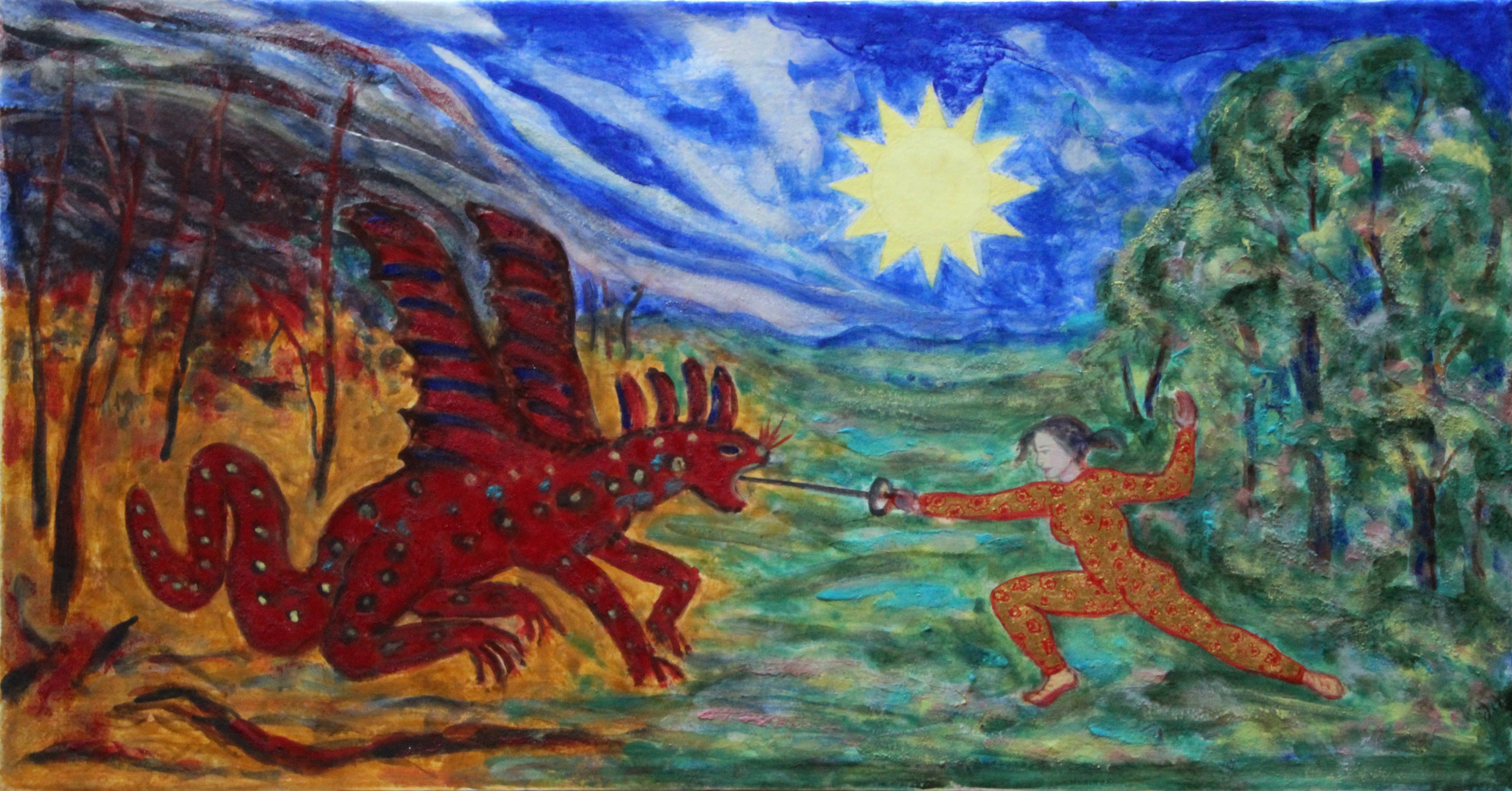 The central theme of my figurative work explores the psychological relationship between the imagination and the phenomenal world through the archetypal images of myths and religions. The imagination ignites the archetypes which are embodied in all spiritual and numinous experiences. The paintings and relief works are executed with natural color, hand-ground from rocks and crystals. The “chromatic” figure and nude transcend the restrictions of realism. The reliefs consist of life-size figures which emerge from the picture plane highlighting the tension between illusion and a physical presence. Triptychs and four panel works investigate the limits and function of a “poetic” narrative