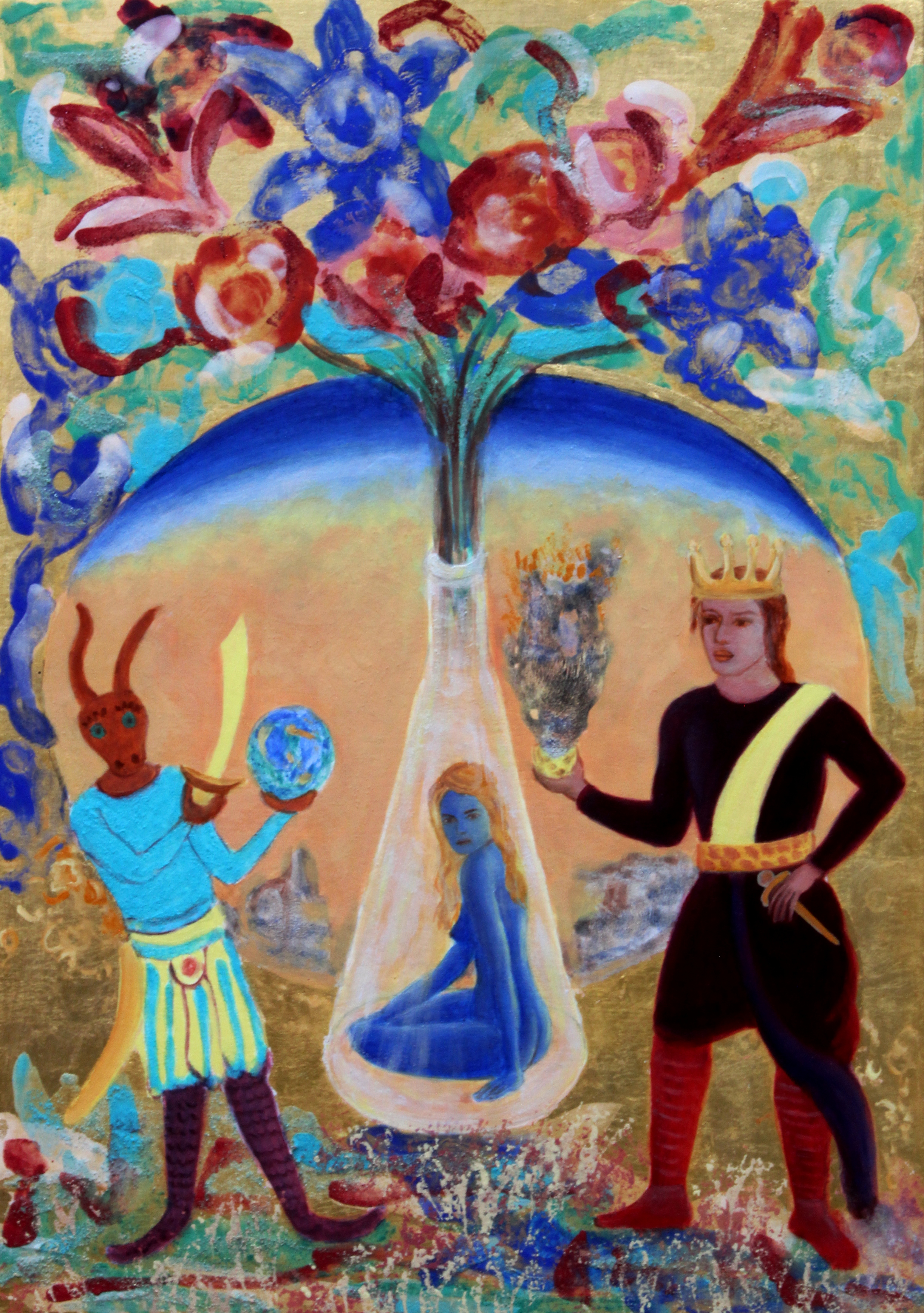 Michael Price questions the psychological relationship between imagination and reality, fixating on the archetypes of myths and religions. He seizes on the quintessential imagery that transcends cultural barriers, seeing these trends as the spark of inspiration. His paintings and reliefs use natural pigments hand-ground from rocks and crystals, his palette reminiscent of the Renaissance painters. In his reliefs, figures burst from the picture’s plane to highlight the tension between illusion and materiality, while triptychs and paneled works investigate the functionality and limitations of the poetic narrative. He graduated from Stoke-on-Trent College of Art with a pre-degree Foundation Course and earned a BA with honors from London Central School of Art and Design (now Central St. Martins). Along with exhibiting his works in the United States and Europe, Price contributed to and published research on mineral pigment production