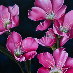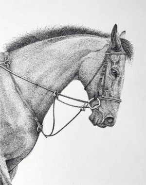 Nat picked up a pencil a few years ago and explored several media before choosing oil painting. She is currently working on conveying the serene beauty of horses in her Timeless Florals series. Each subject is approached in a different way. Horses are portrayed in a realistic, classical manner, to capture both their strength and softness. An underpainting is completed first and is then covered with several glazes of color. In the floral series, she works more intuitively, boosting the flowers’ natural colors and shapes, for a more idealistic result. In a third, but less extensive series, people portraits are achieved in the same traditional manner as the equine portraits: an underpainting is completed over a detailed drawing and then glazed over. Most paintings are done in oil on deep panels. A few portraits are, however, completed in ink on paper.