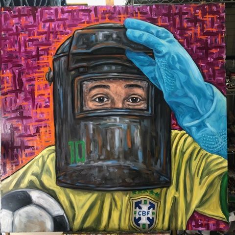 Ethan Serman is questioning the significance of authenticity and identity in his works. He was born in Philadelphia, and currently resides and works in New Brunswick, New Jersey. His paintings are connected to the places where they come from. He uses bold colors, different materials, textures, elements of architecture to tell the story of each unique object.