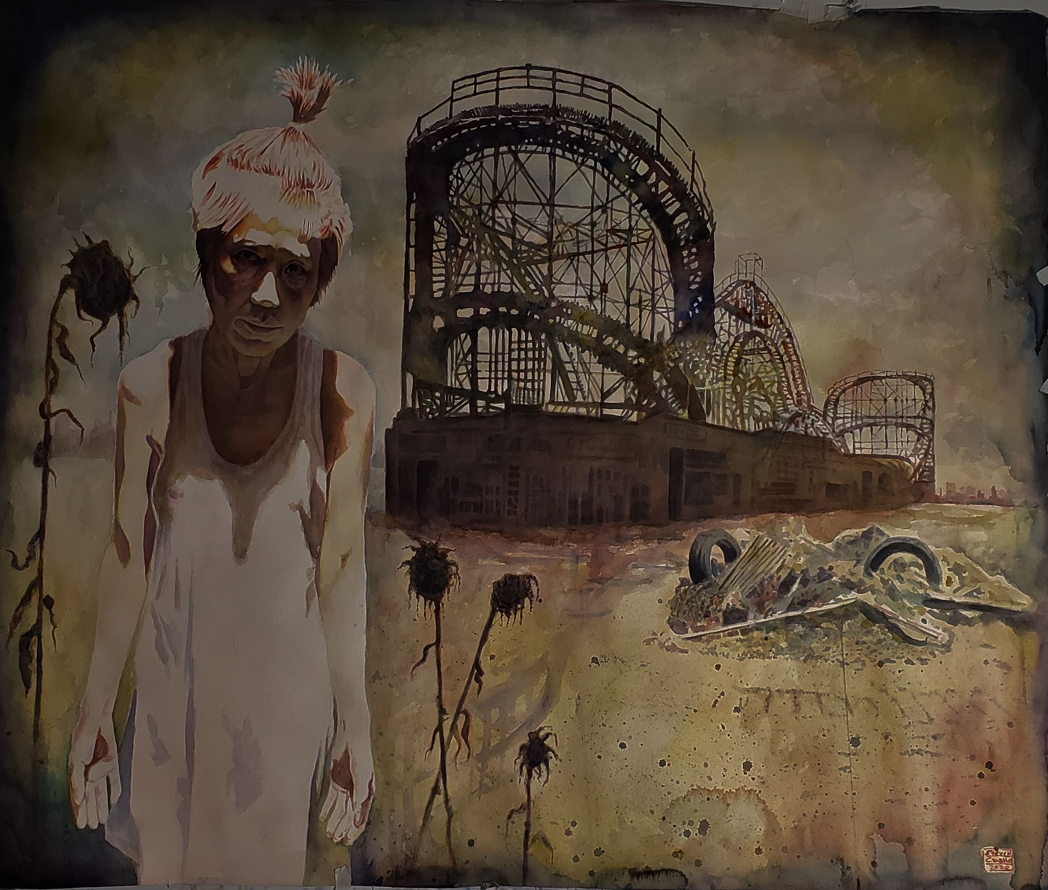 Steve Cavallo examines the human figure in his works, drawing viewers to both find beauty in fellow beings and ponder weighty subjects within human rights. A graduate of the School of Visual Arts, Cavallo uses watercolor to paint victims of human trafficking—a majority of them women—with great respect and overwhelming empathy. As colors emphasize the difficult reality of those impacted by cruel and brutal practices, while the forms manifest memories and dreams of what and who they wanted to be before inhumanity twisted them. In 2010, Cavallo designed the United States’ first memorial to Comfort Women, sexual slaves of Imperial Japanese soldiers in World War II, in Palisades Park, New Jersey. His striking works compel viewers to connect with victims of intense trauma and ponder what it means to be human.
