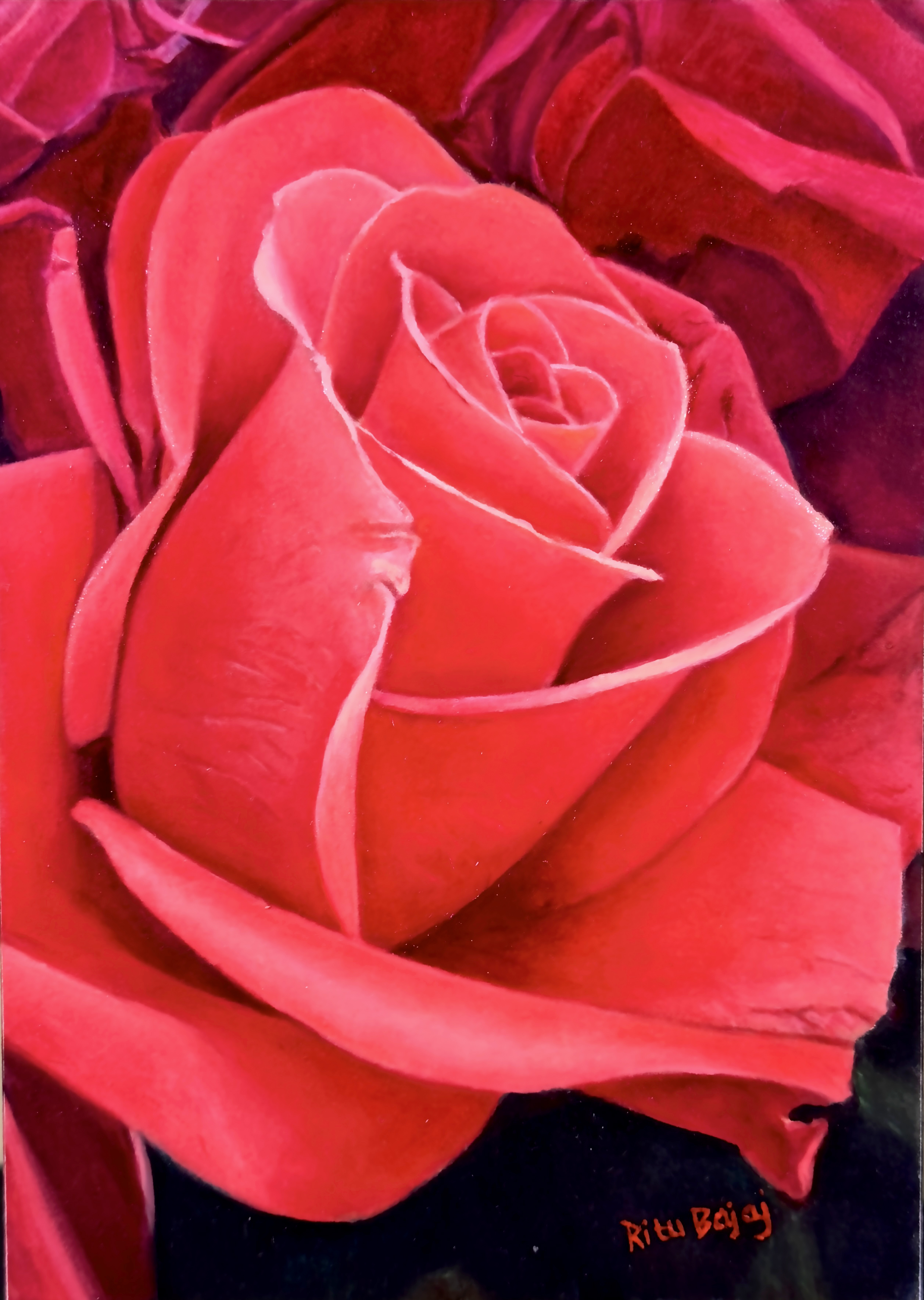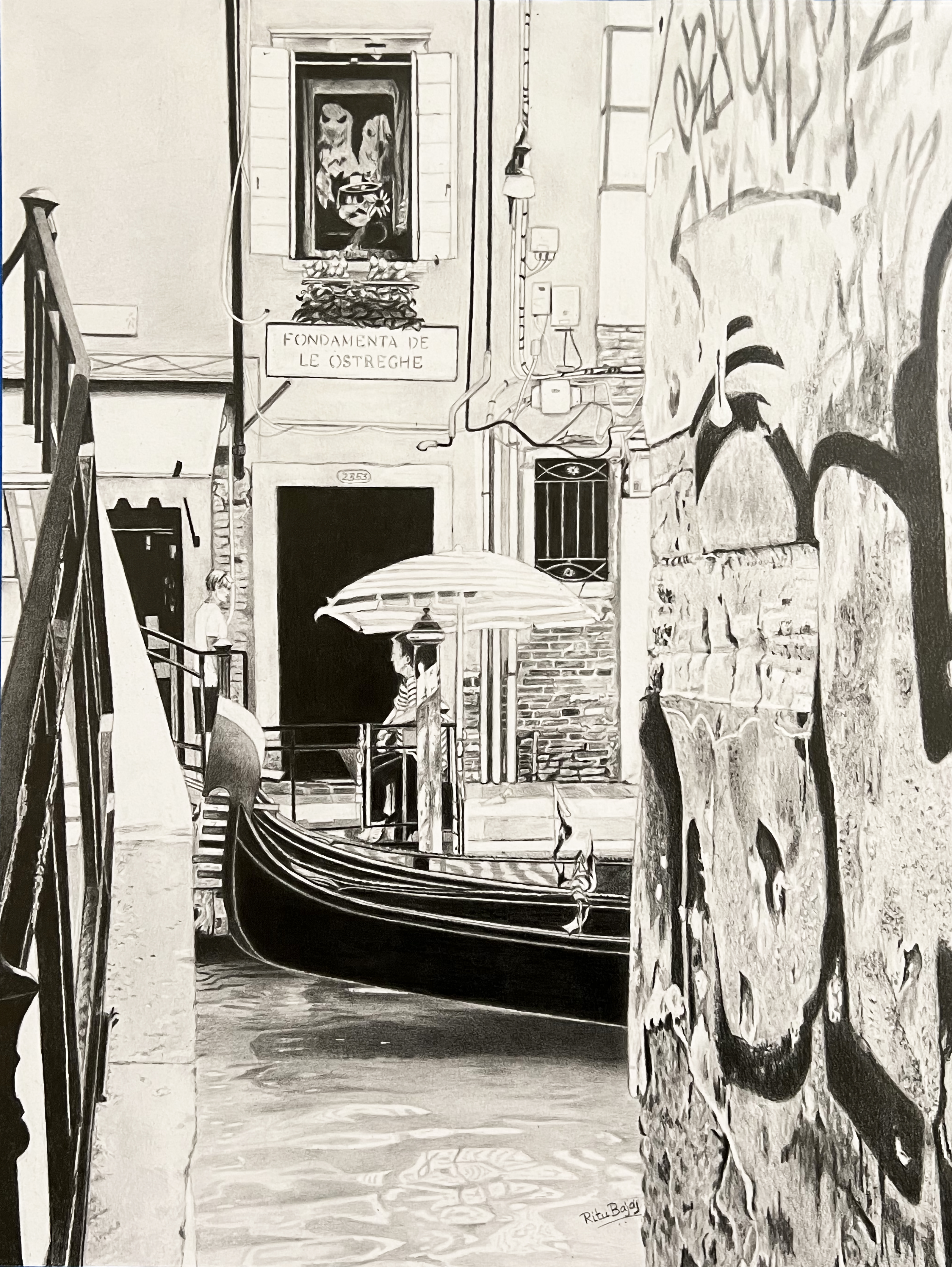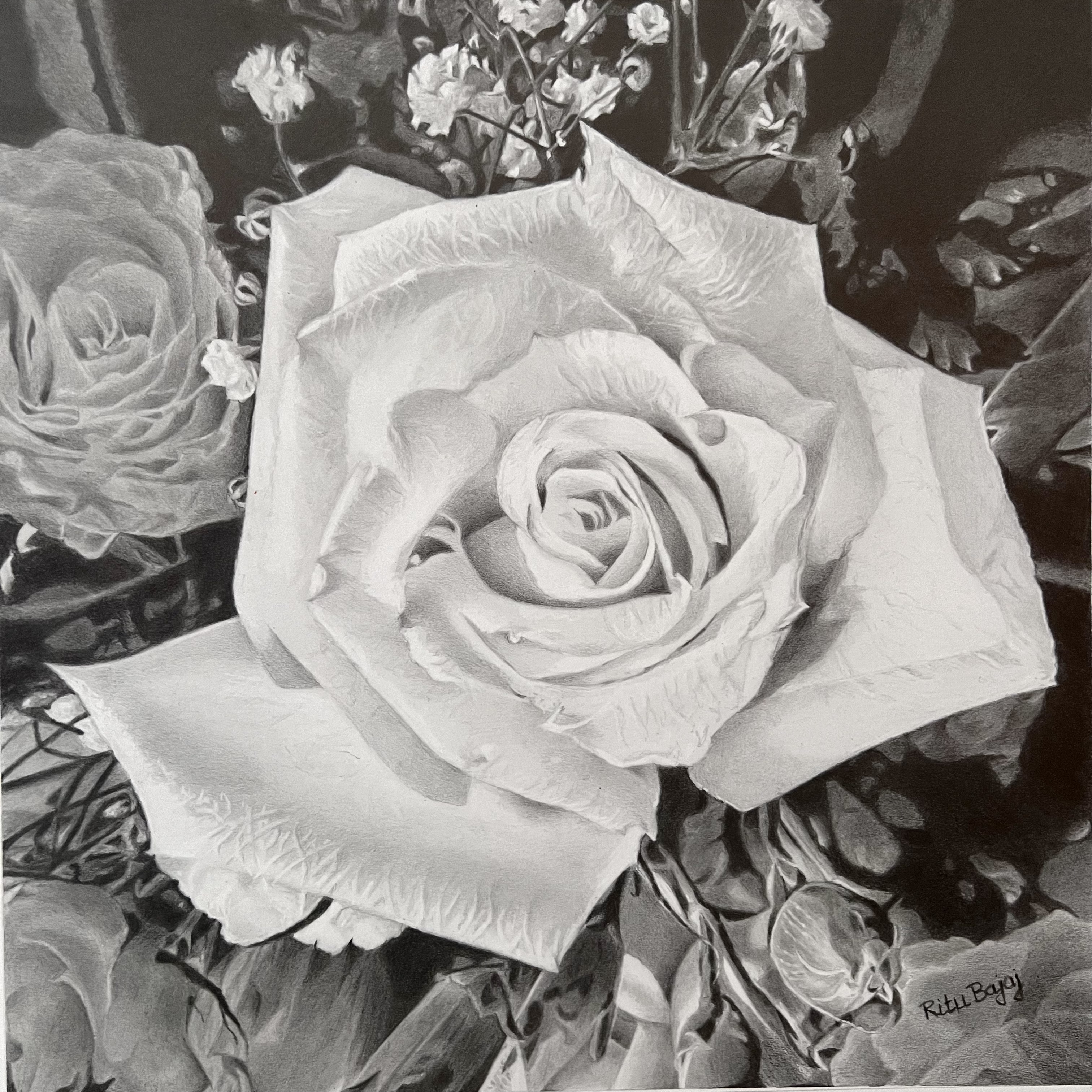 During the past decade, Ritu has also produced artwork with graphite, charcoal, and pen and ink just as easily as she has with oil paint. Her work ranges from landscapes, still life, florals to portraits.