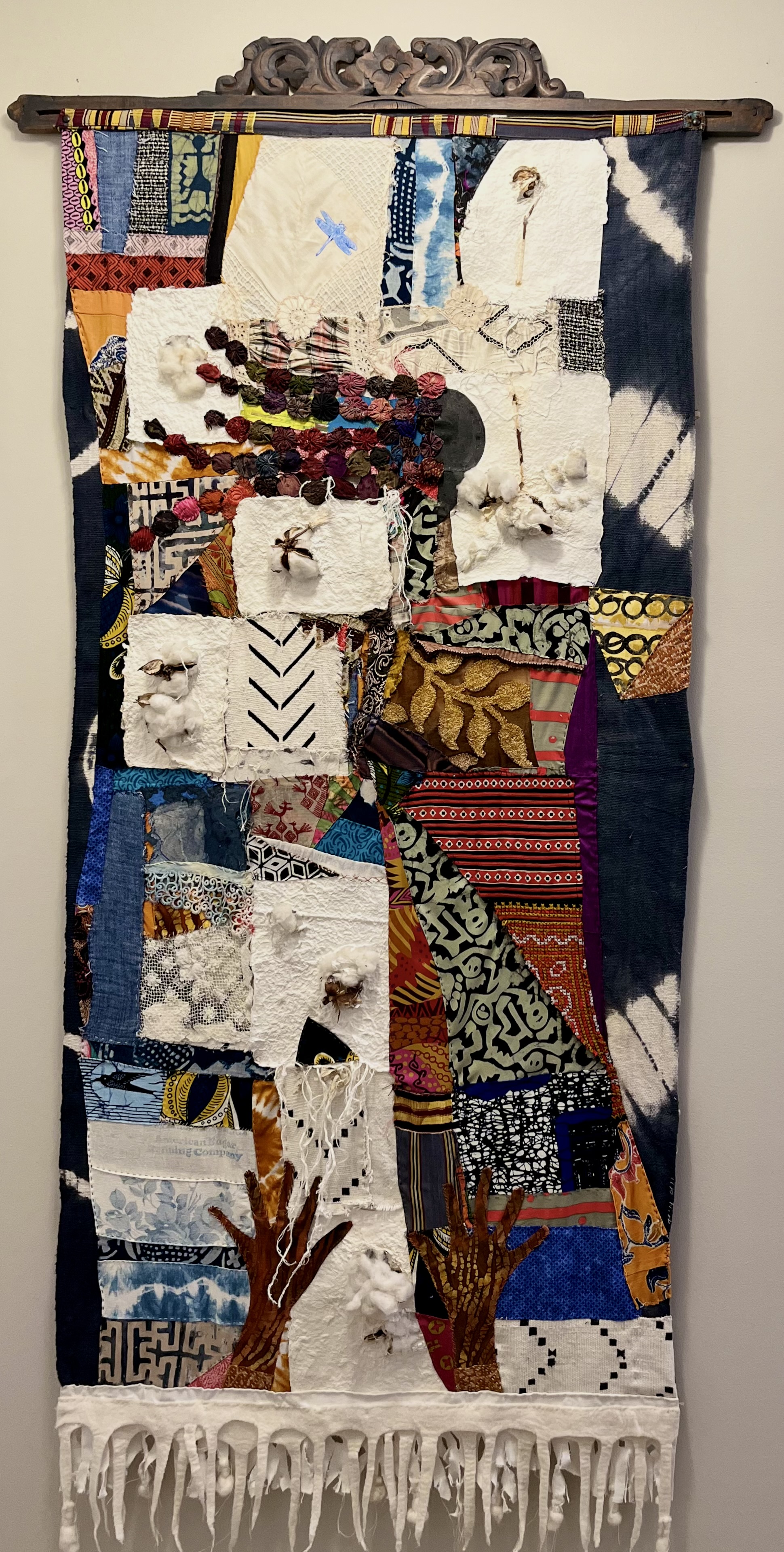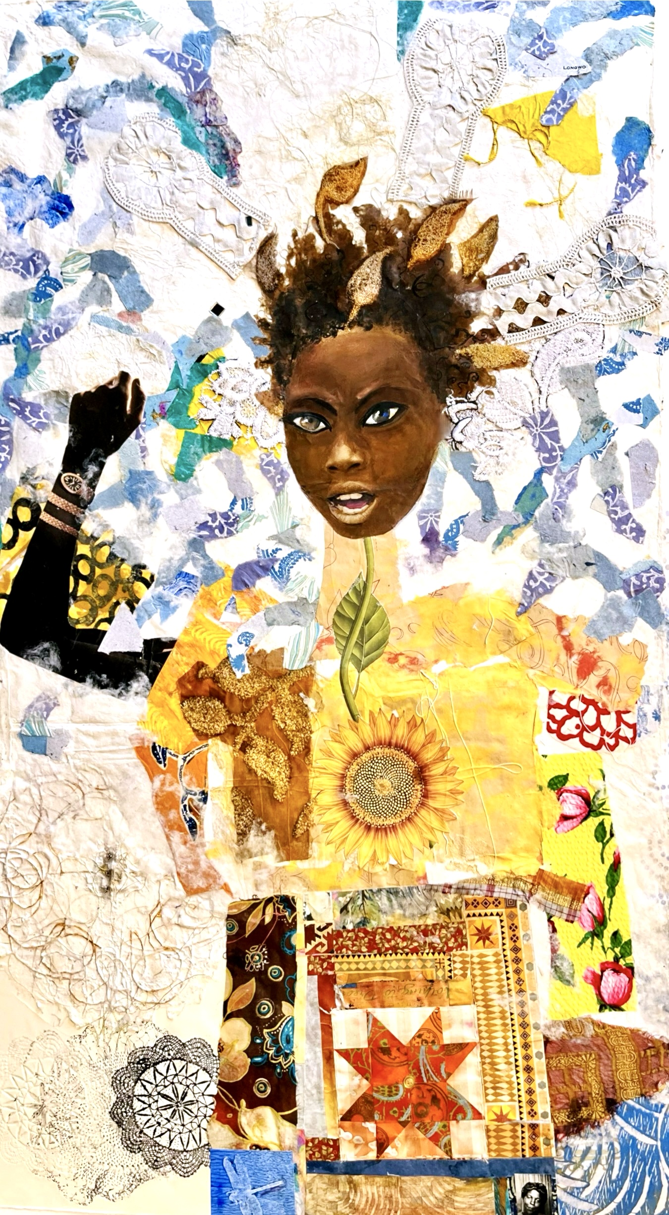 Rosalind Nzinga Vaughn-Nichol, a mixed media artist and papermaker based in Bear, Delaware, describes herself as a storyteller through her art. Her creative narratives are woven from textures, textiles, and handmade papers, each piece serving as a medium for her stories to unfold.