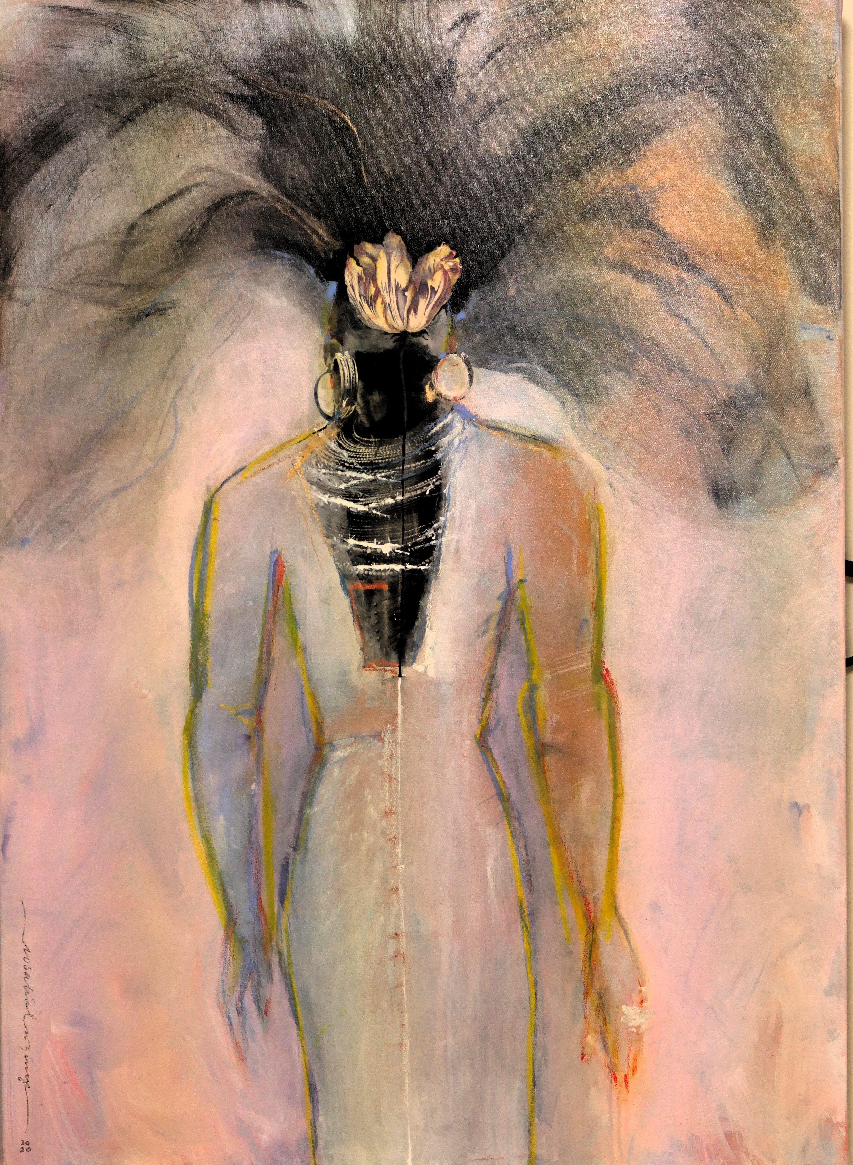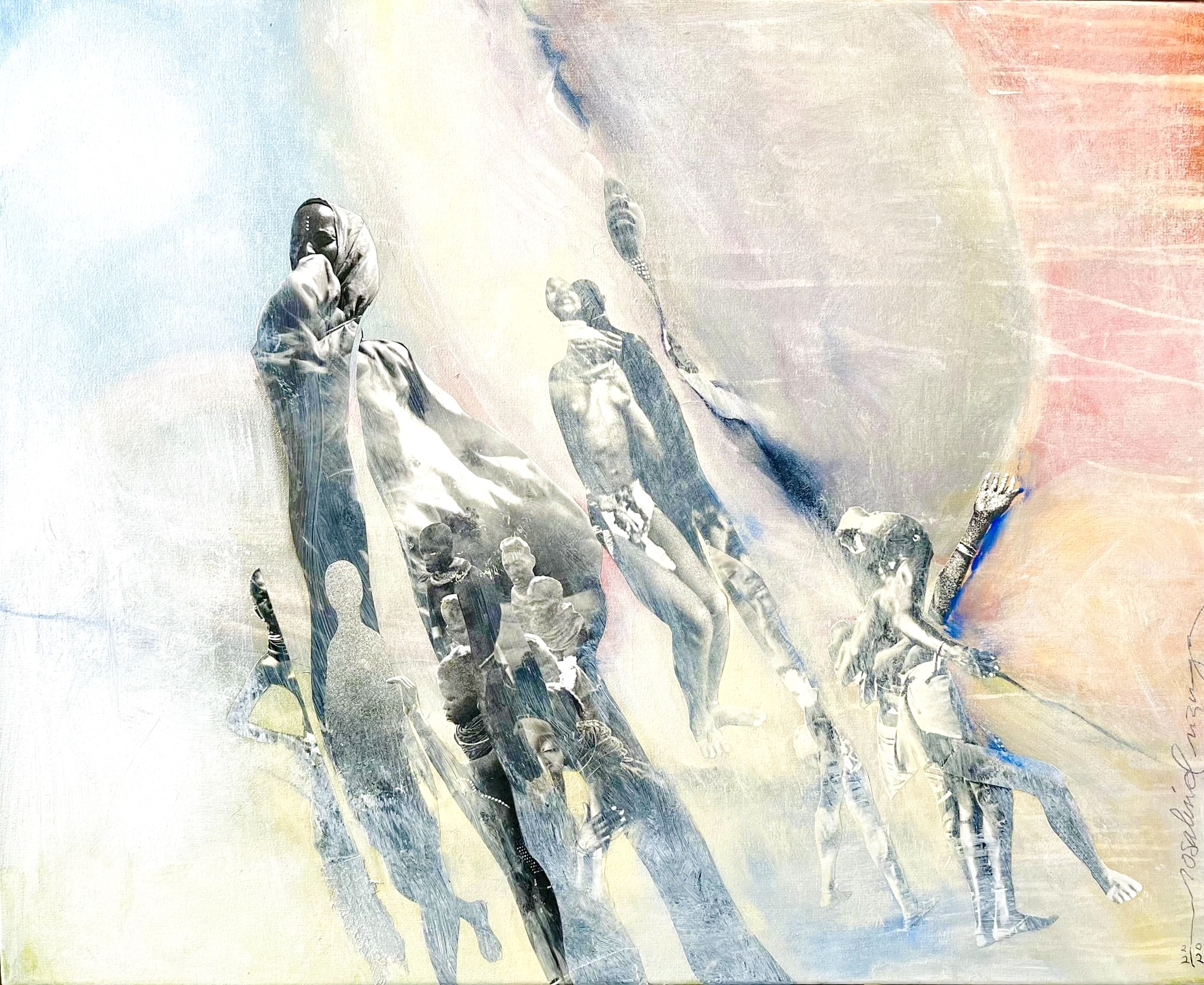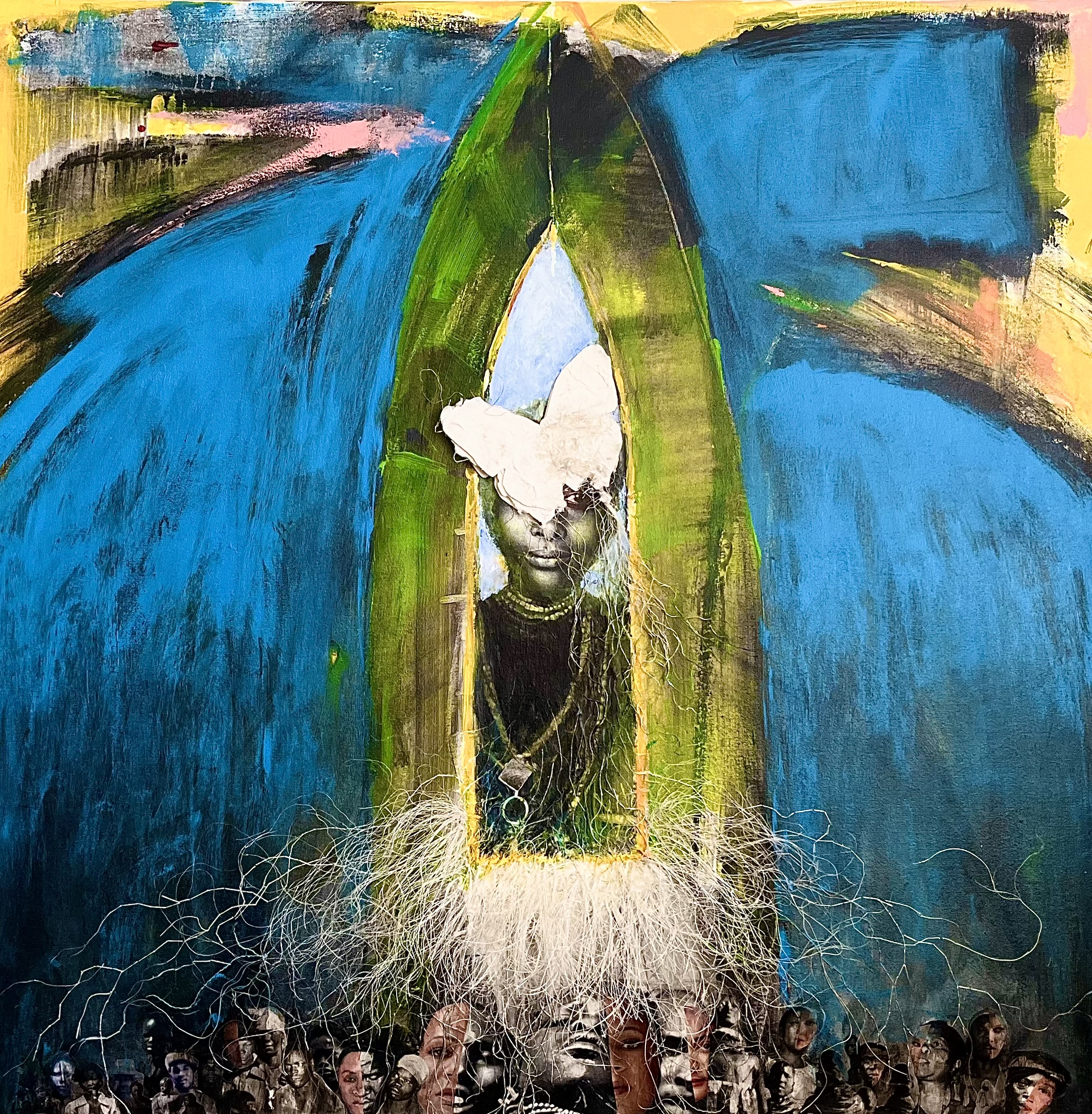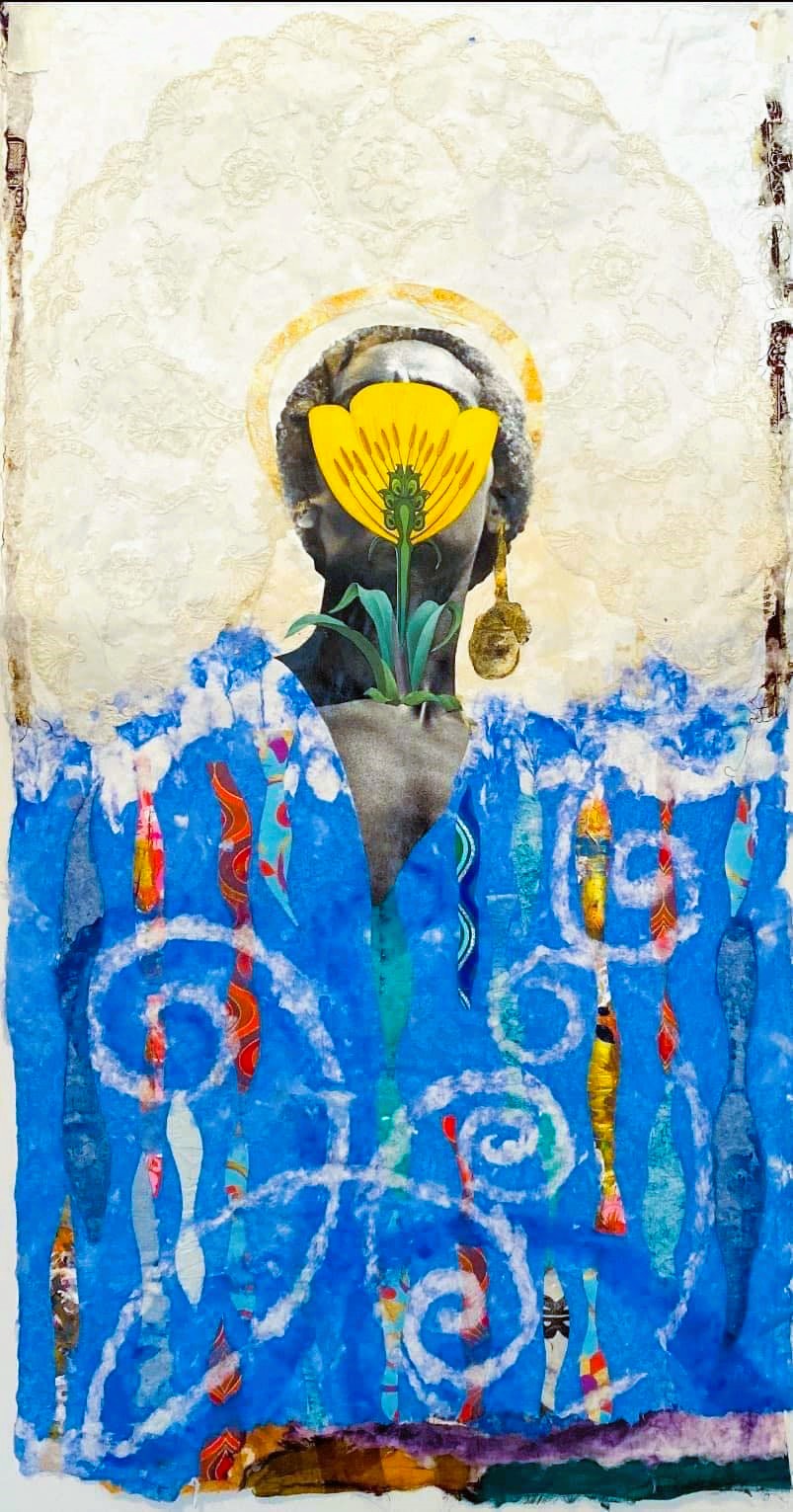 Her artworks are primarily abstract, offering lyrical and spiritual narratives that invite viewers to interpret them in their own way. While her pieces often include iconography or textiles from the African diaspora, reflecting her American and Africana roots, they are intentionally left vague to allow space for personal interpretation and connection. Rosalind’s art is not just a reflection of her heritage but a bridge to broader conversations about identity, history, and sustainability.