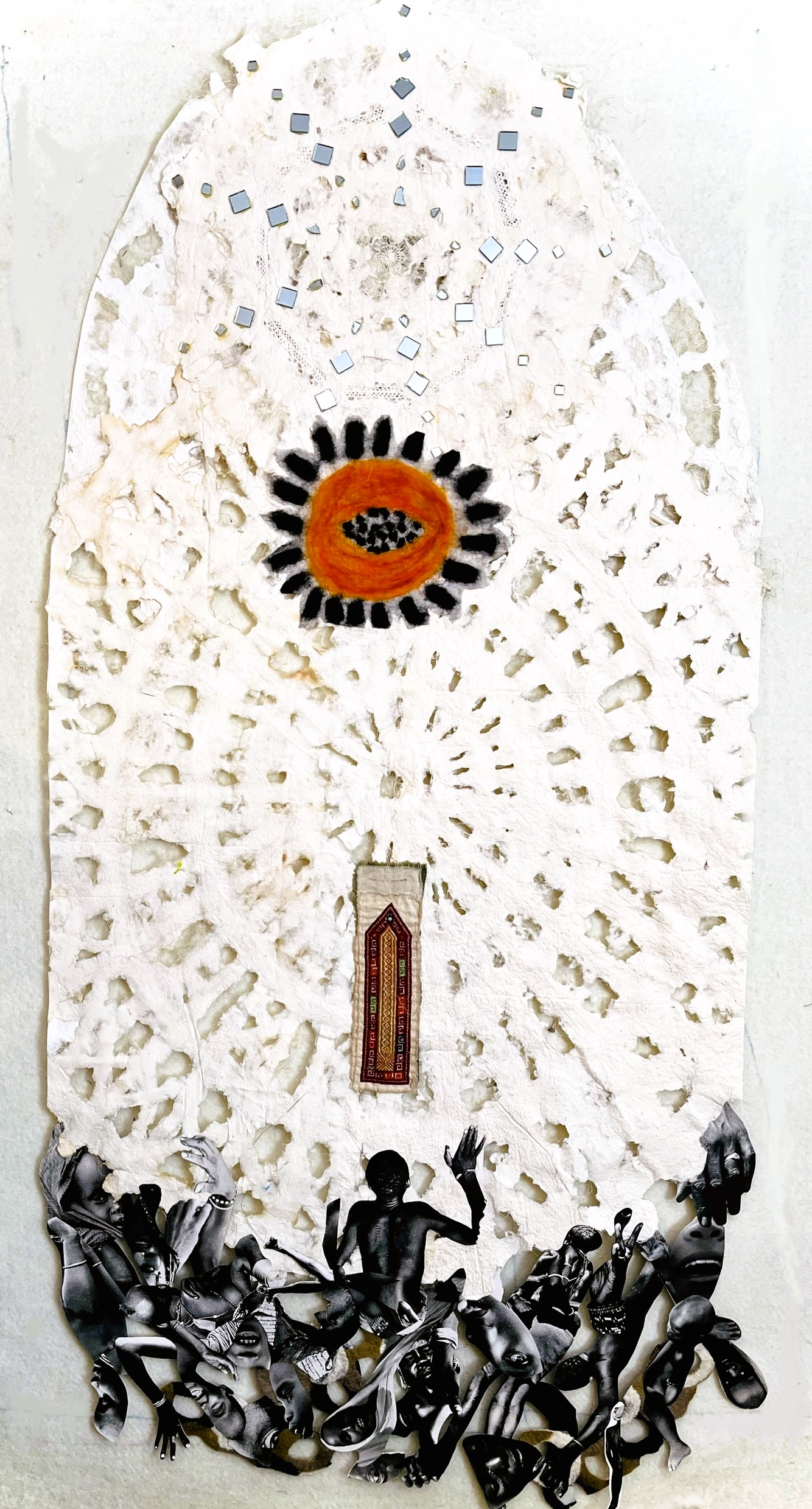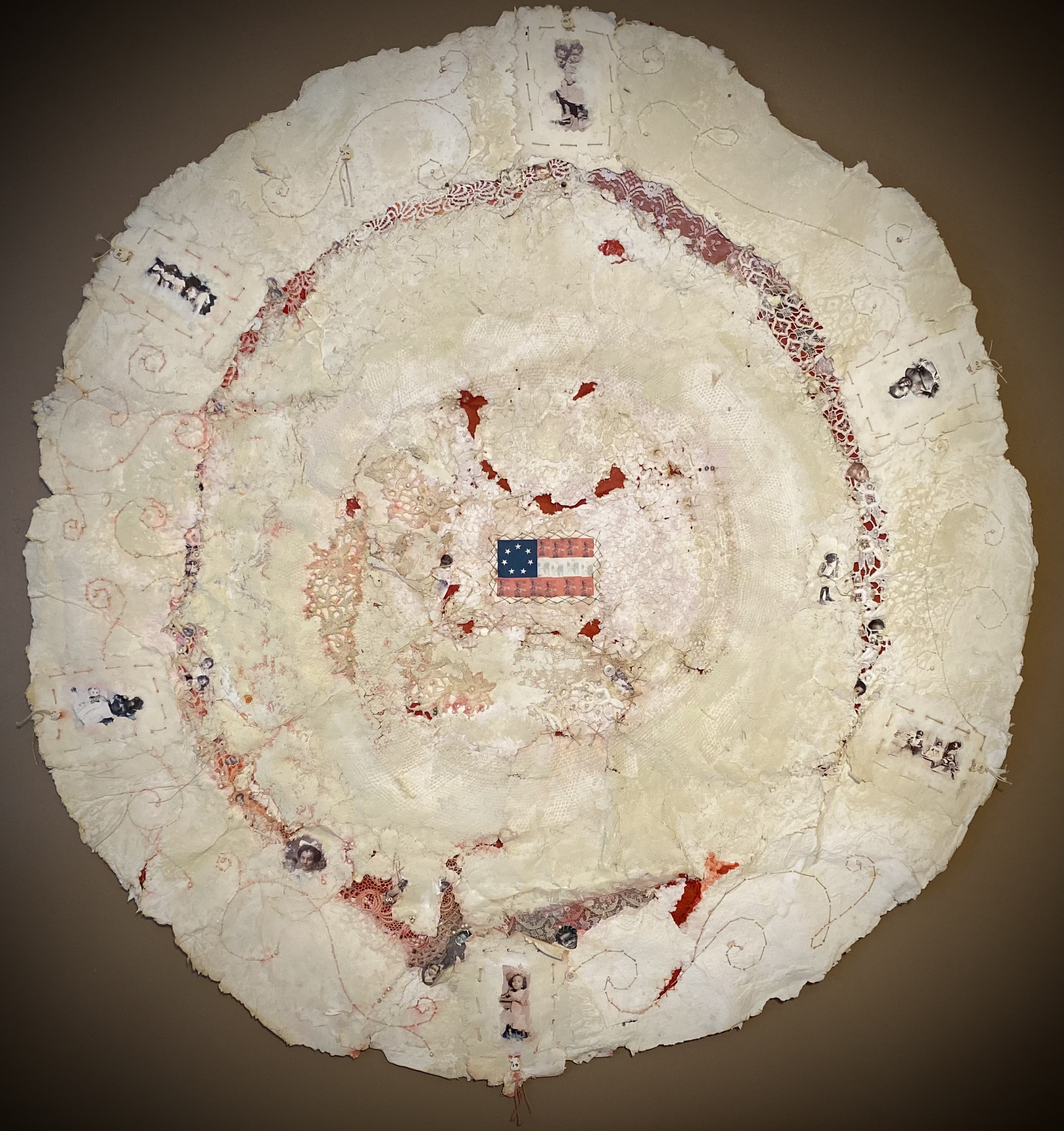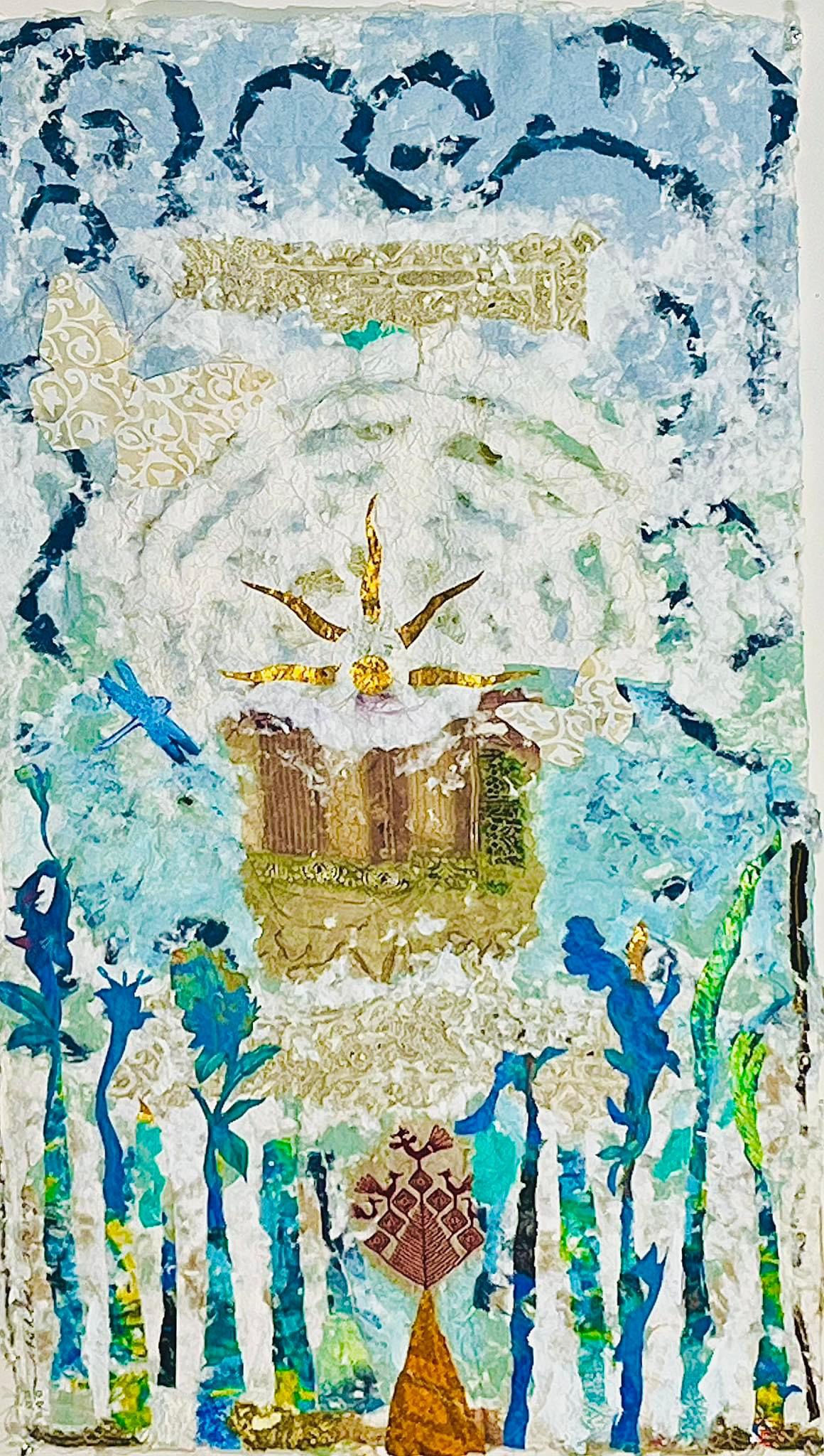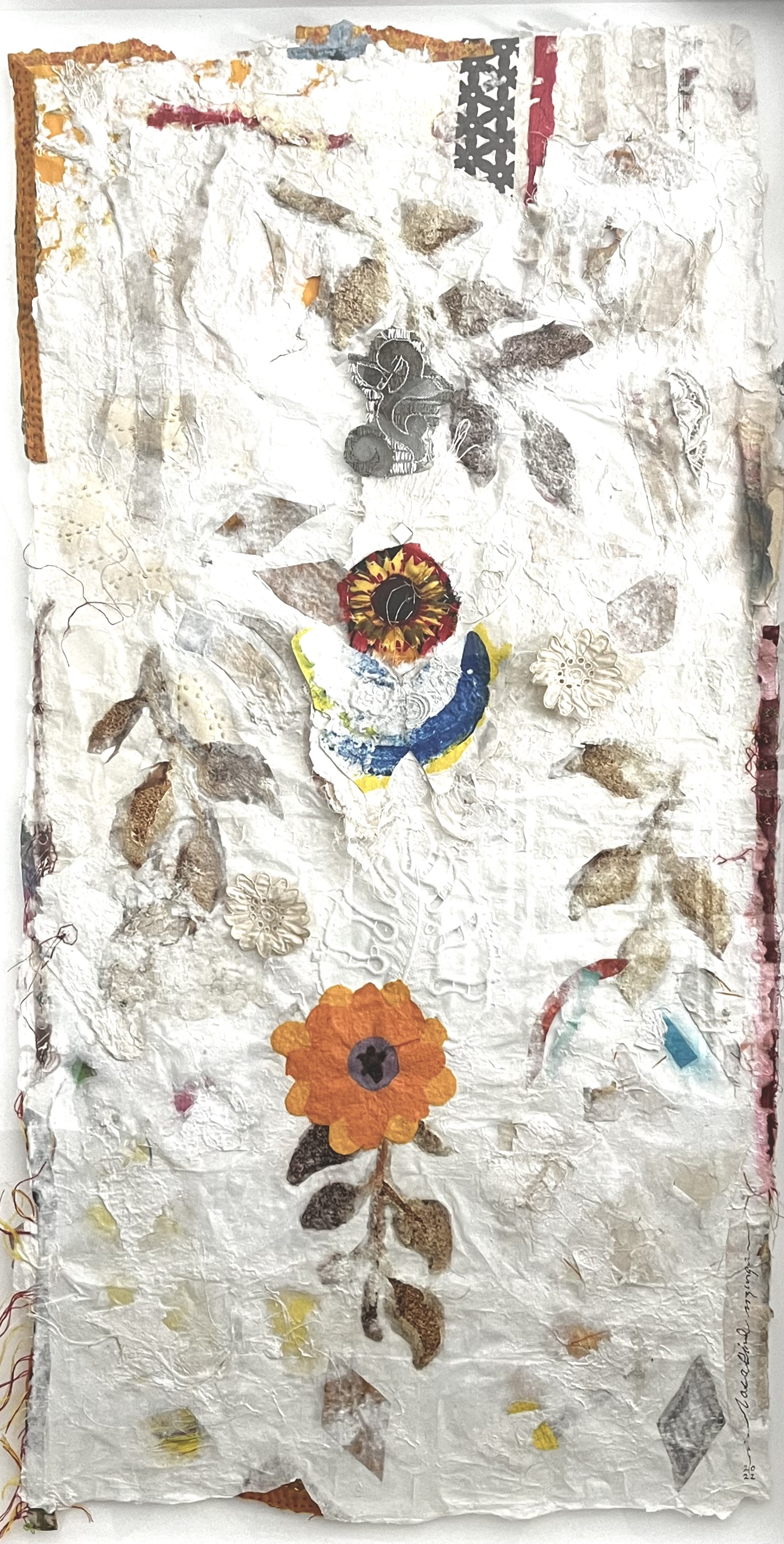 For over two decades, Rosalind’s primary focus has been on integrating vintage lace and textiles into handmade paper, which she utilizes in a variety of formats including mixed media collages, paintings, quilts, and installations. This passion for repurposing materials was inherited from her grandmother, Esther, who taught her the value of recycling everything—from garments to their individual threads—imbuing Rosalind’s work with a profound sense of history and sustainability.